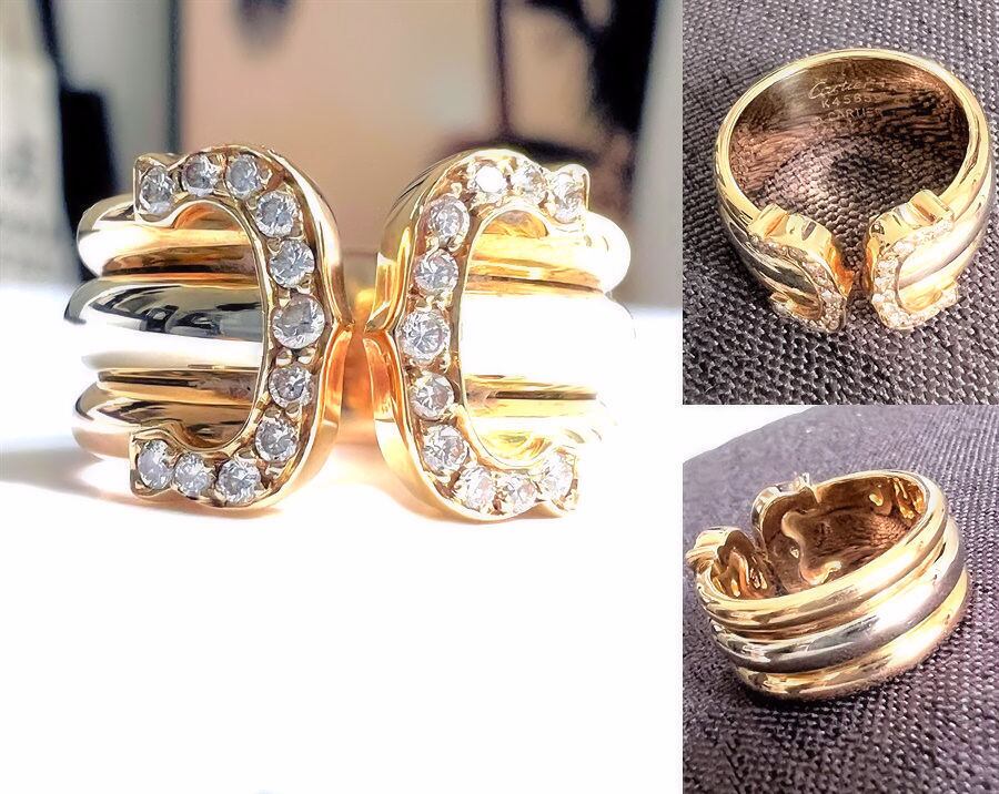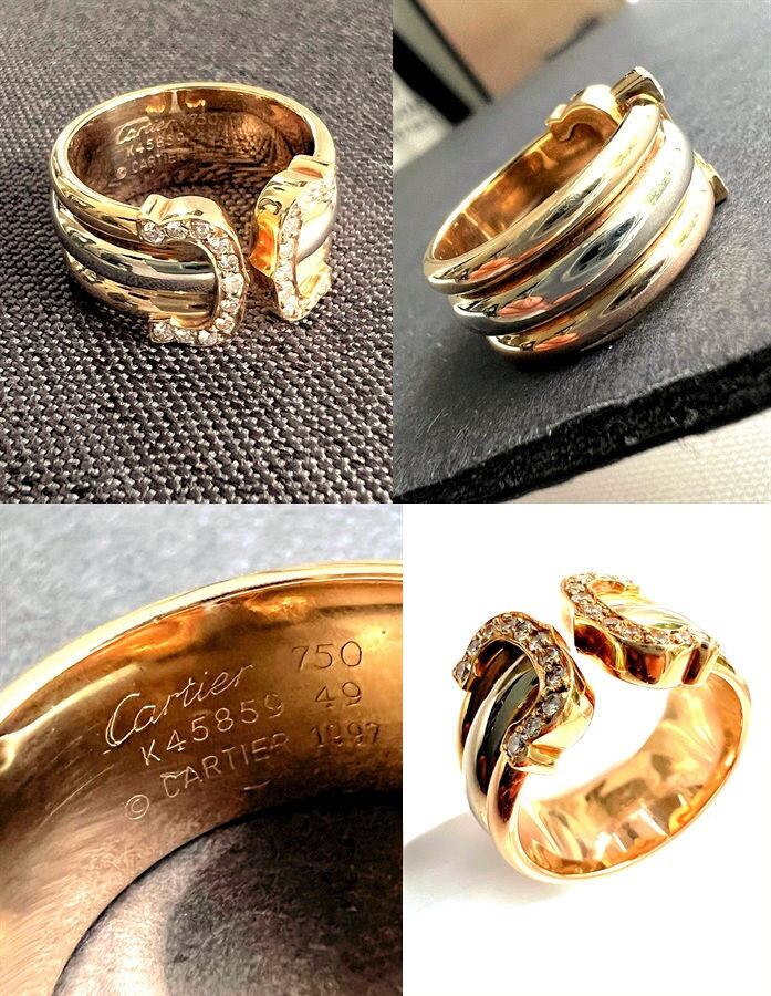 CARTIER カルティエ K18 YG PG WG 3 スリーカラー ゴールド 2C ラージ LM リング ダイヤモンド 22P パヴェ トリニティ 指輪