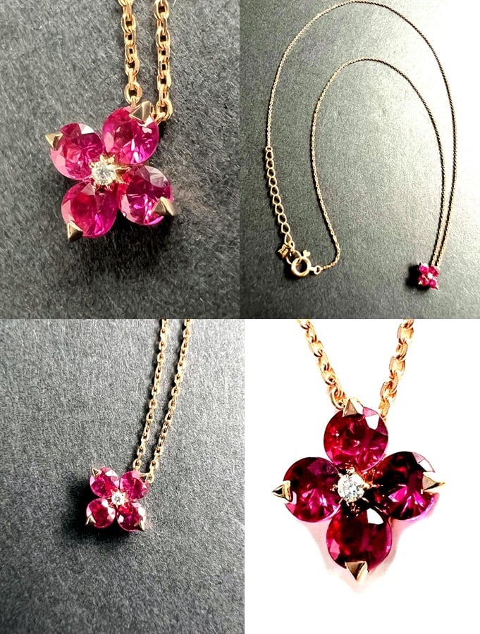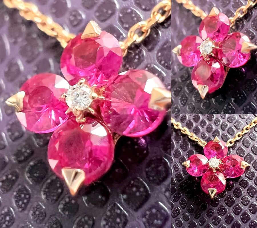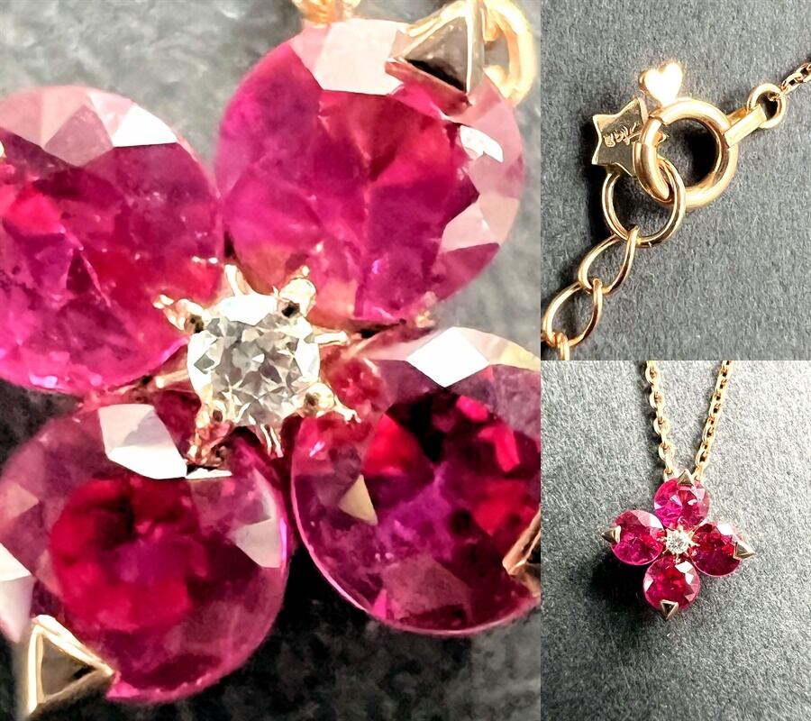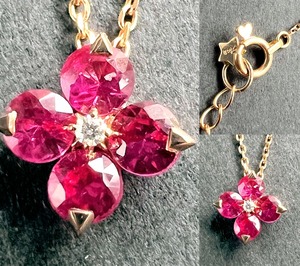 ダイヤモント & ルビー 5ポイント ペンダント ネックレス