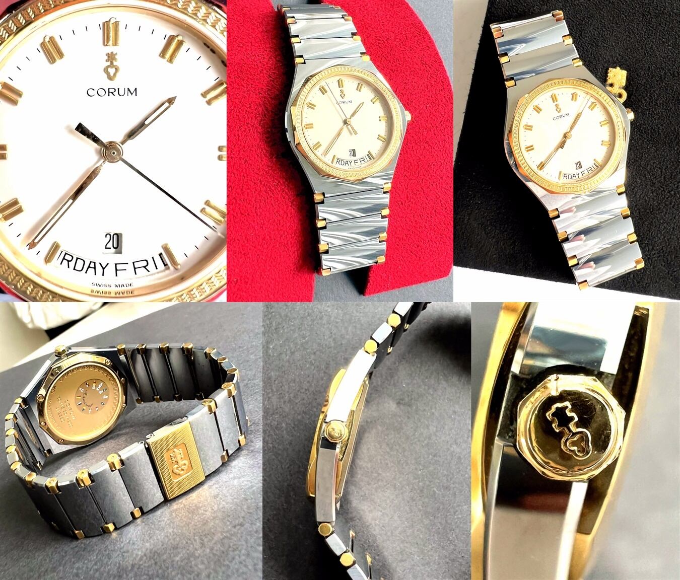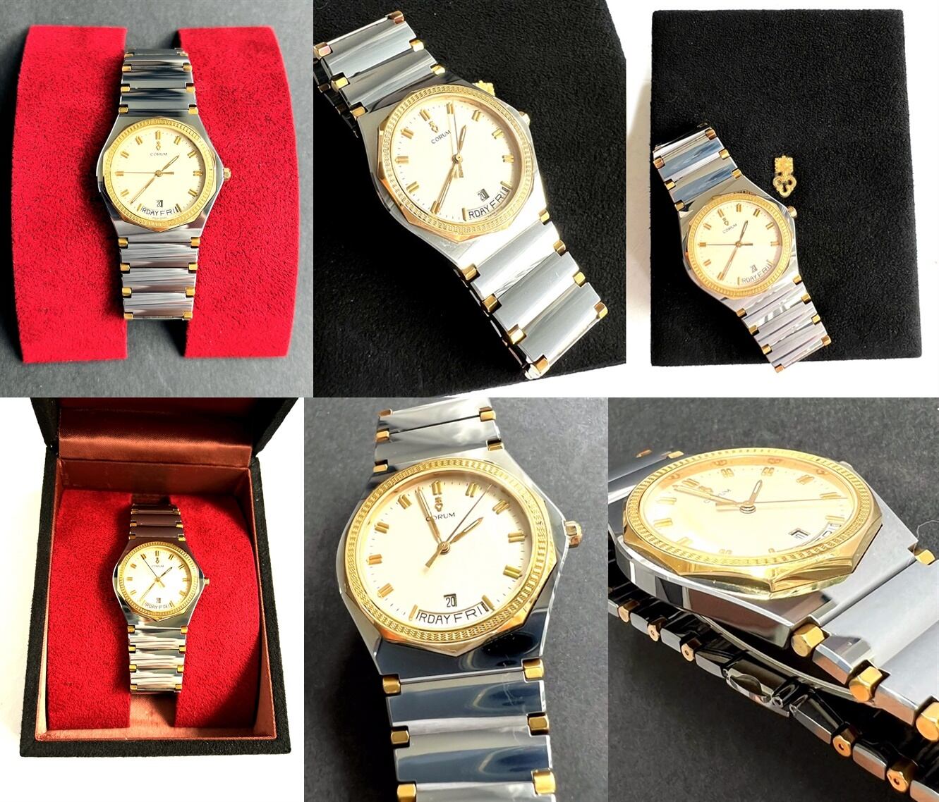 CORUM コルム アドミラルズカップ デイデイト タングステン K18YG メンズ 34mm 90.115.50 V200 クォーツ デイト K18YG x SS タングステン