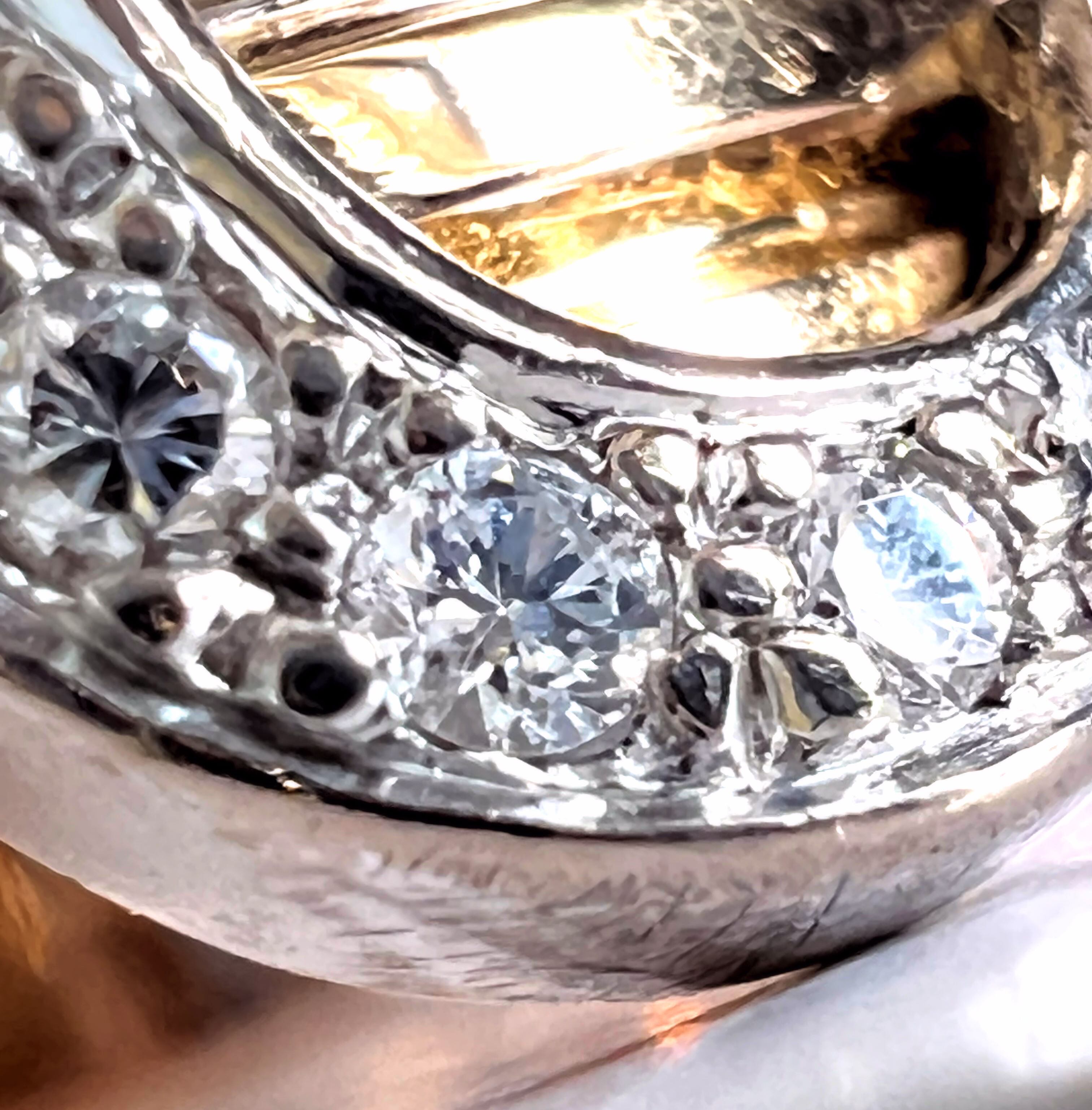 ホワイトゴールド、ピンクゴールド、イエローゴールドのスリーカラーとなっているスタイリッシュで豪華なダイヤモンドリングです。