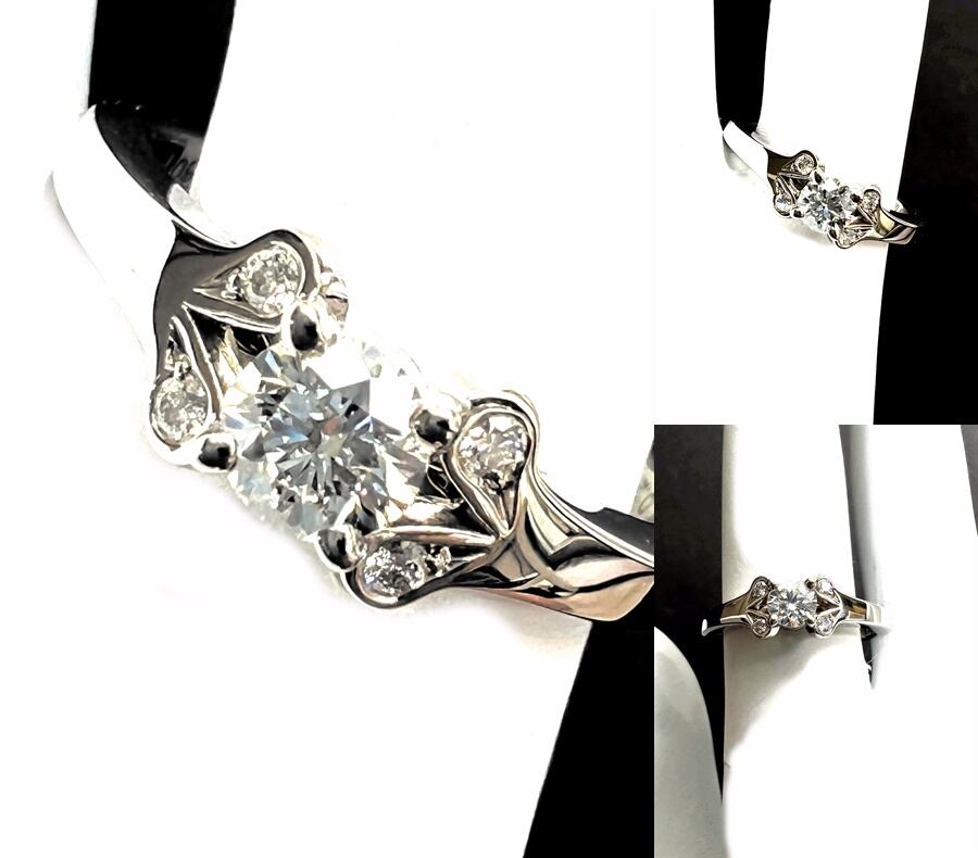 特にセンターストーンの大き目のダイヤの美しさは圧巻です。
