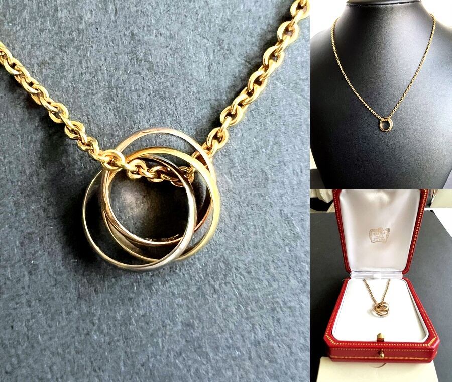 CARTIER カルティエ K18 PG WG YG スリーカラー ダブルチェーン トリニティ ネックレス 純正
