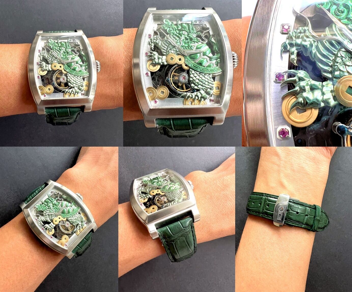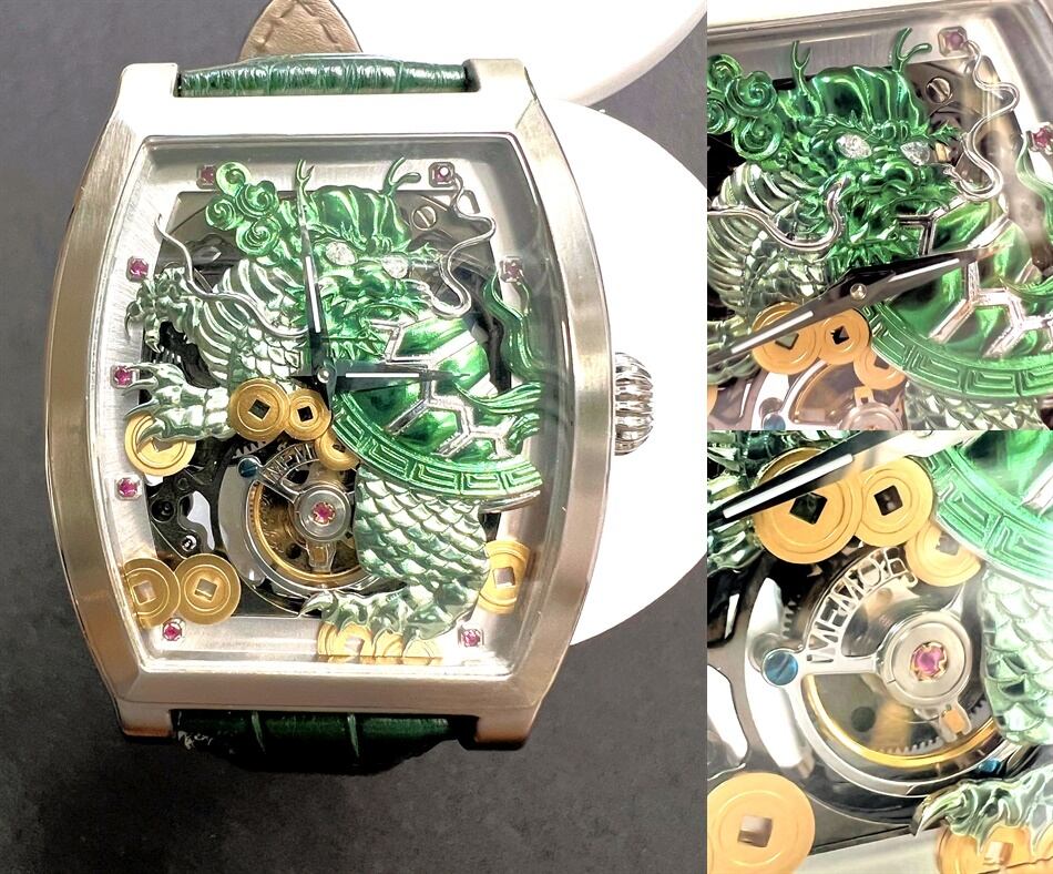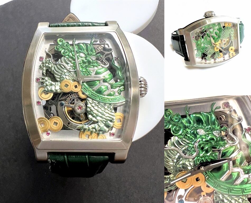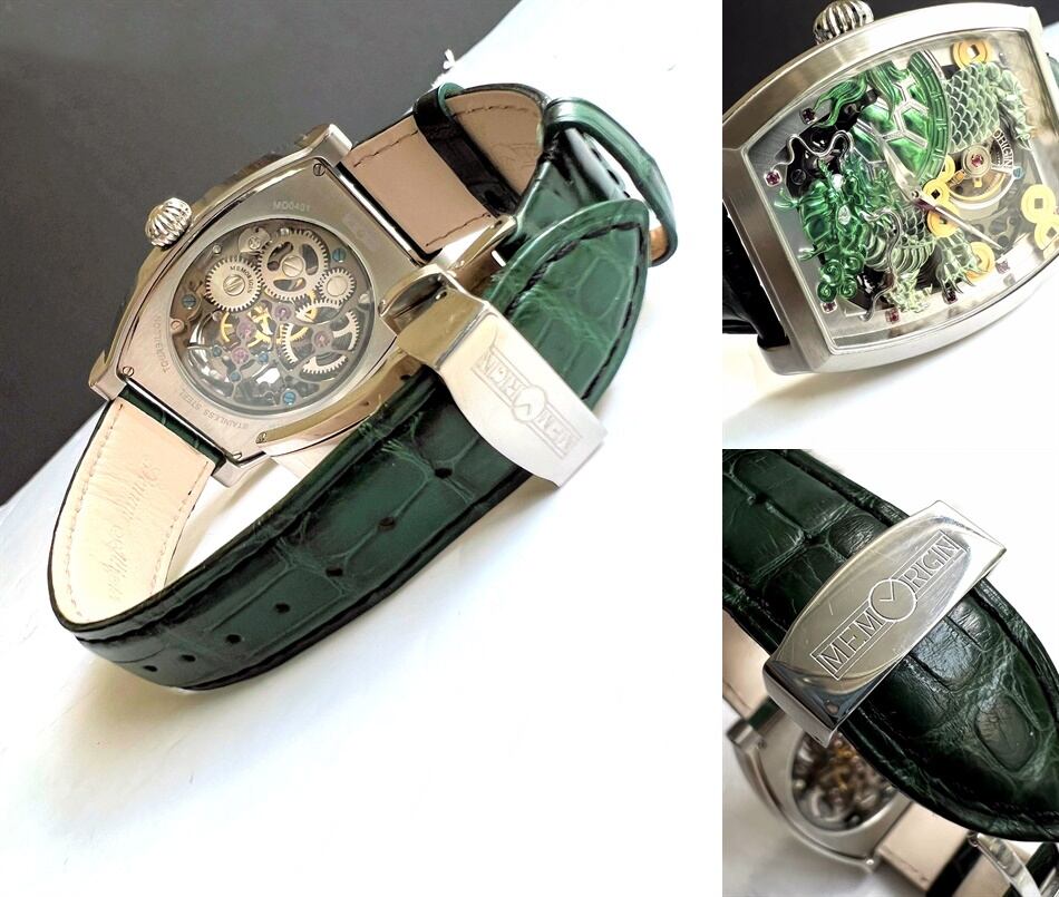 MEMORIGIN メモリジン トゥールビヨン ダイヤ ルビー 霊亀 ドラゴン スケルトン シースルー 手巻き 時計 メンズ