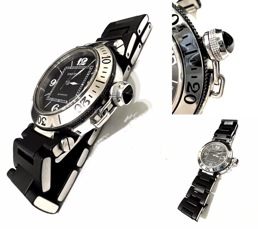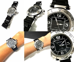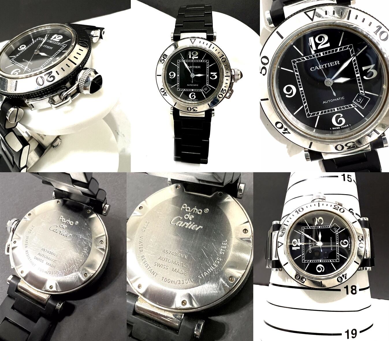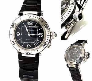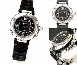 Cartier カルティエ パシャ シータイマー ブラック オートマティック ブラック ラバー ベルト 自動巻き デイト 黒文字盤 W31077U2 メンズ
