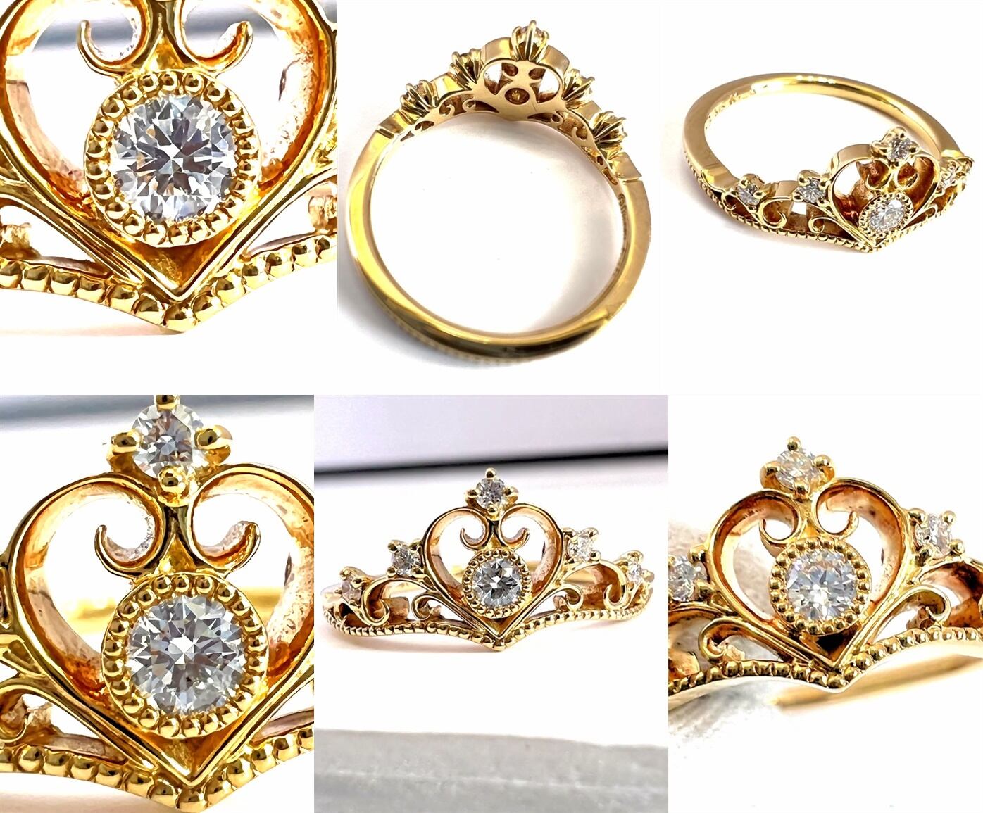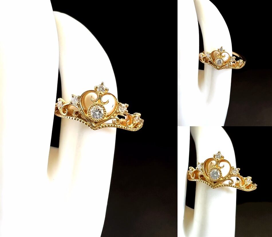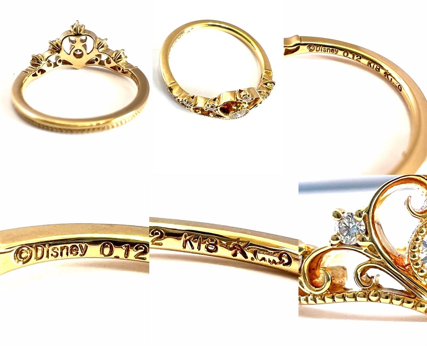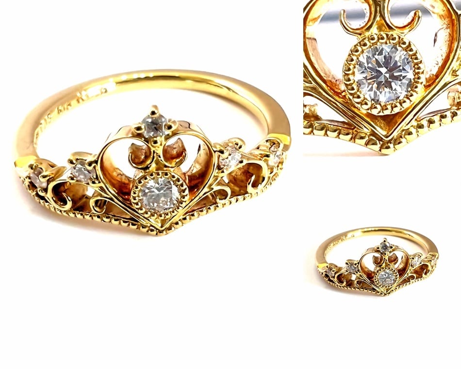Disney KUNO ディズニー ケイウノ K18 プリンセスティアラ ハート ダイヤモンド リング 指輪 10号