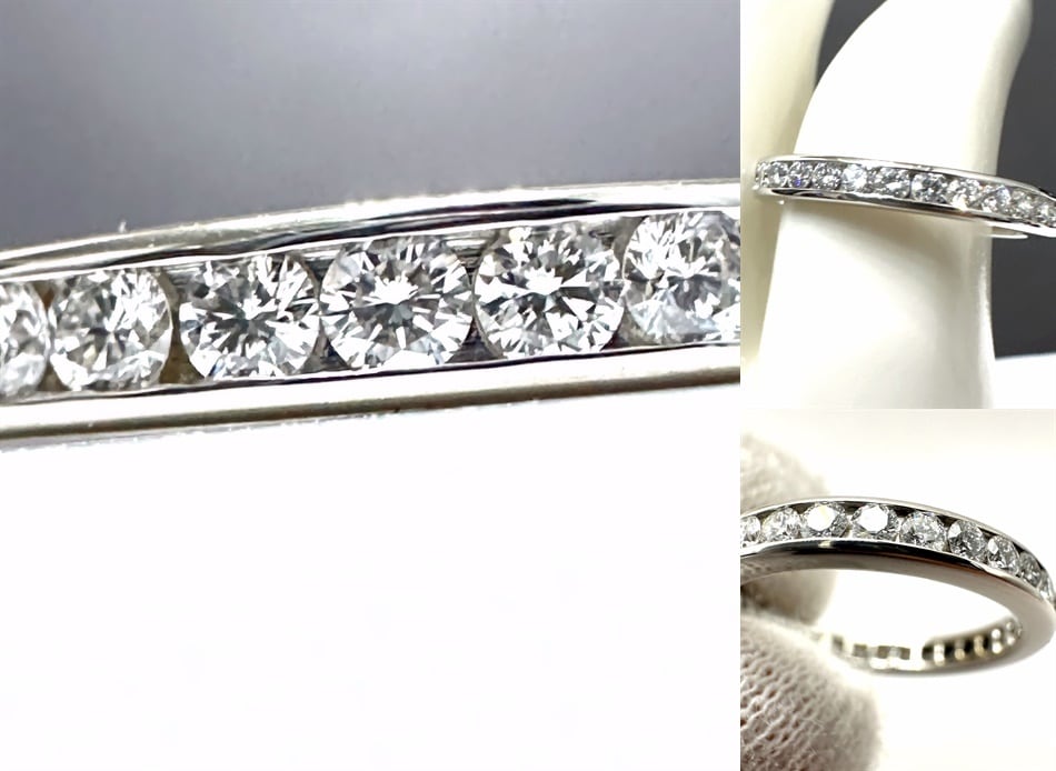 プラチナにラウンド・ブリリアントカット・ダイヤモンドをチャネルセットしたフルエタニティリング。
