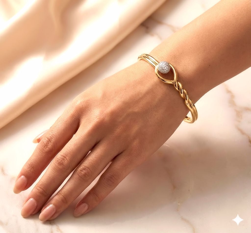 ダイヤモンド ボール ツイスト バングル ワイド