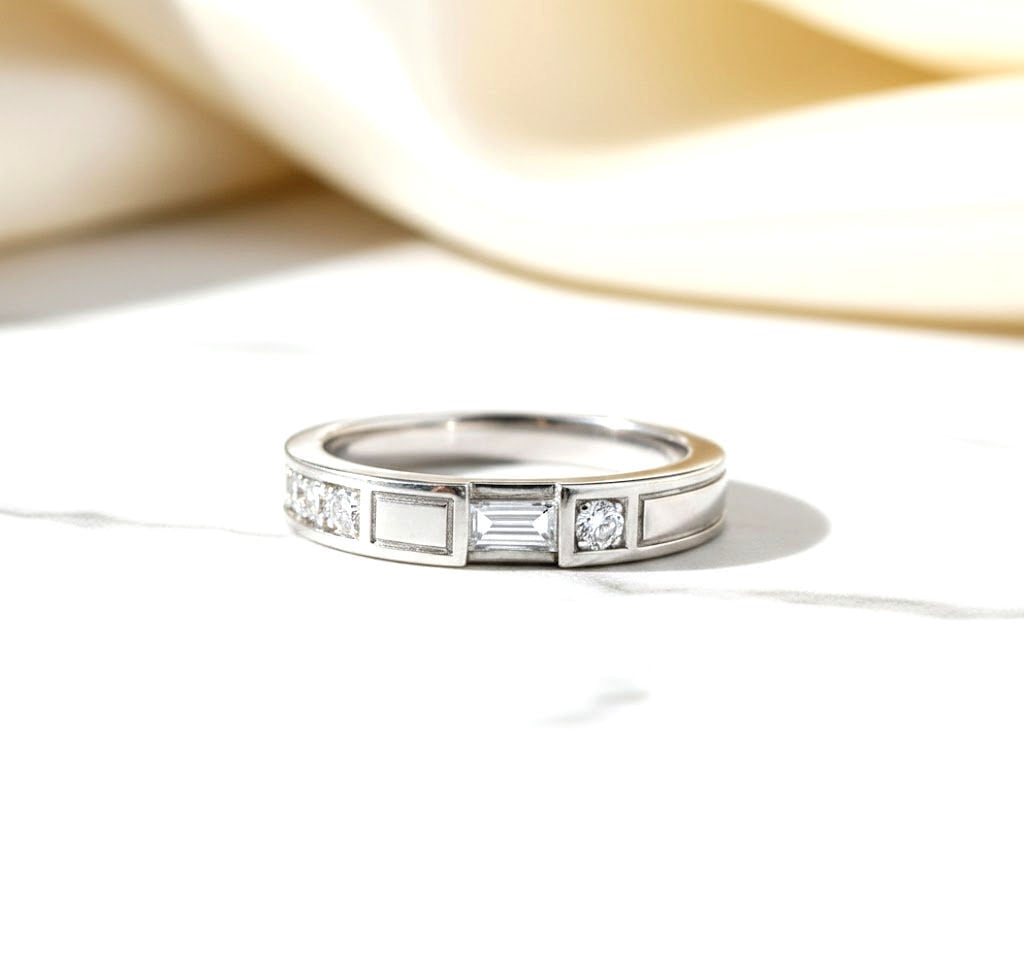 煌めくダイヤモンドとプラチナのアクセントが特徴的なトラフィック・アクセント・バンドリング。