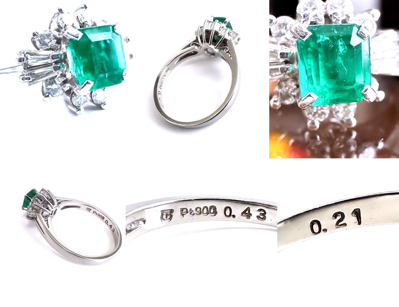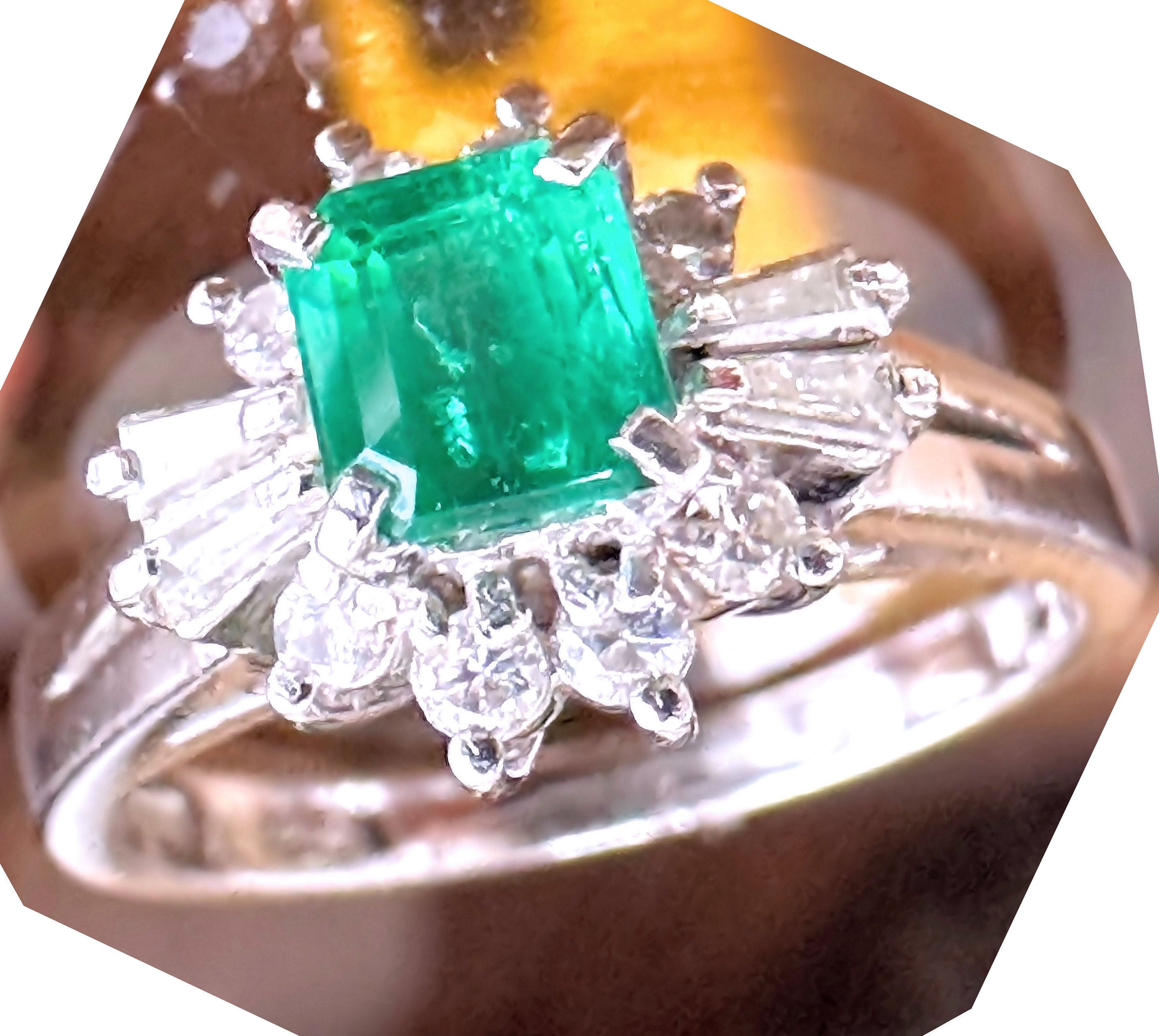 TASAKI タサキ 田崎 エメラルド ダイヤモンド リング バゲットダイヤ 13P プラチナ 指輪 8号 ダイヤ