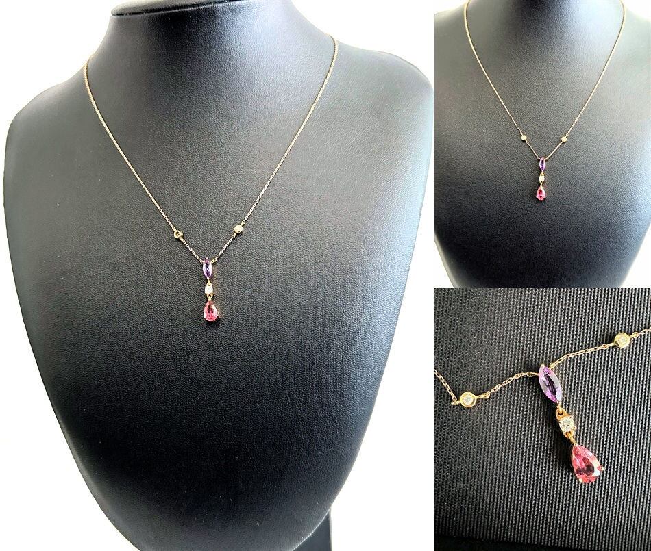 ダイヤモンド アメジスト ルビー ネックレス 雫