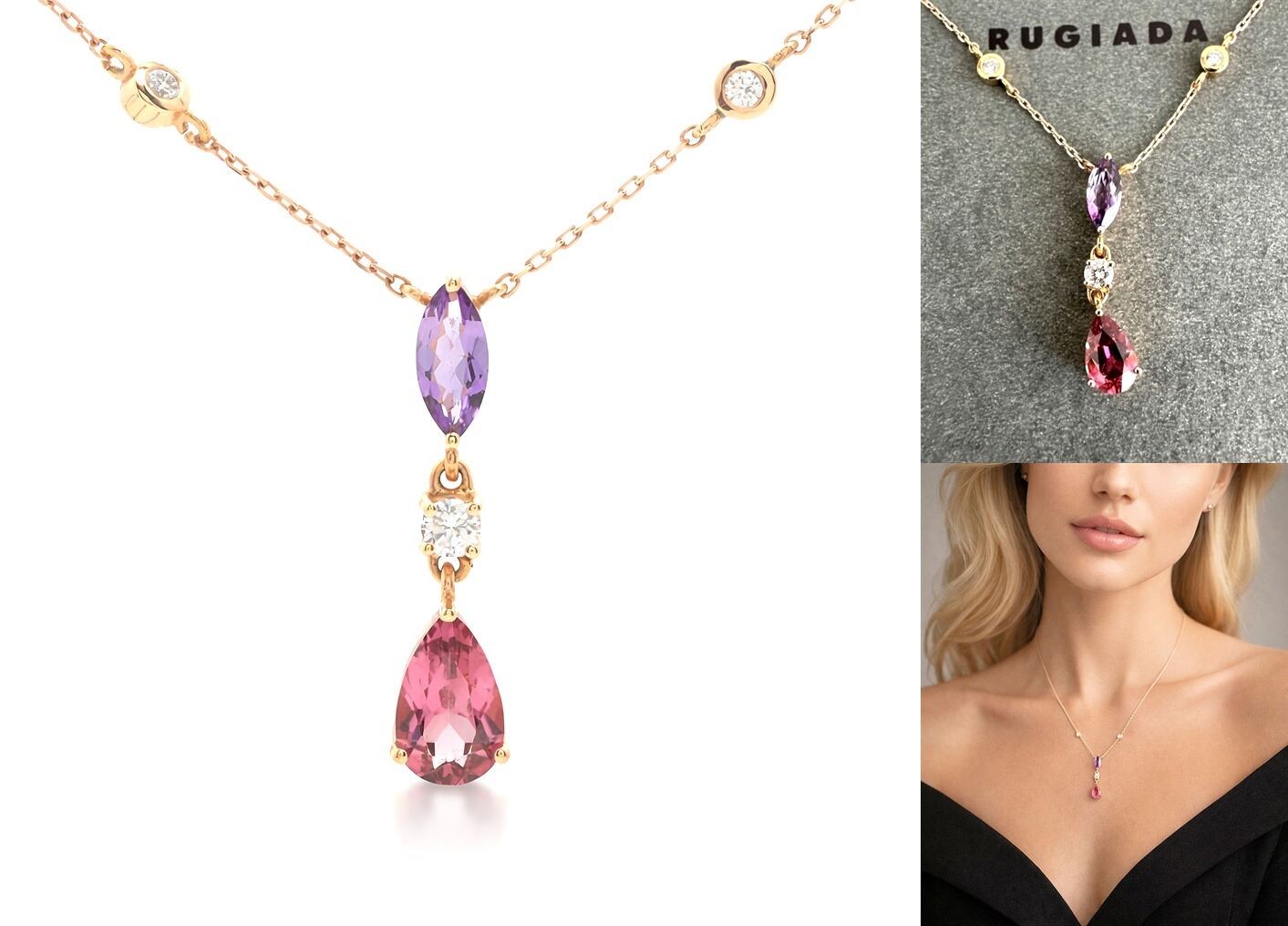 RUGIADA ルジアダ ダイヤモンド アメジスト ルビー ネックレス 雫 K18 RG ローズゴールド