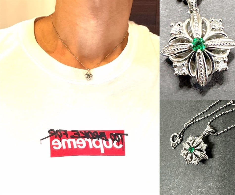 プラチナチェーンも光輝き、高級感あるネックレスが美しいです。