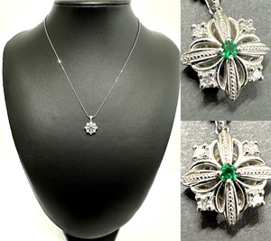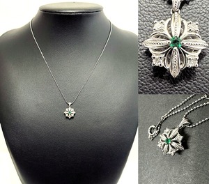 エメラルド ダイヤモンド クロス ネックレス Pt900×Pt850
