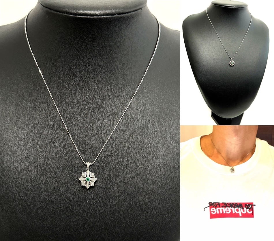 KUNO ケイウノ エメラルド ダイヤモンド クロス ネックレス プラチナ Pt 4Pダイヤ ペンダント シュランバー 男女