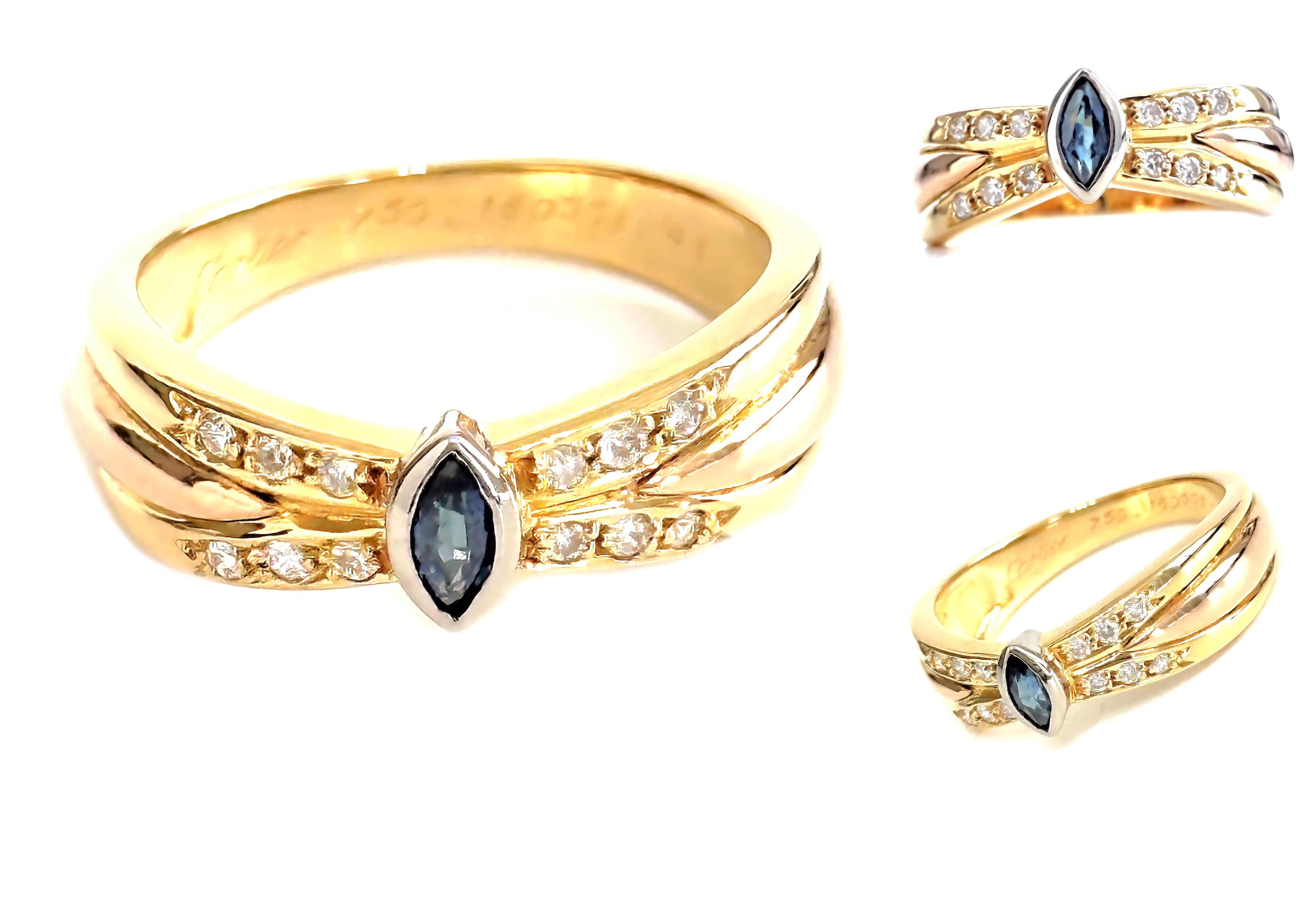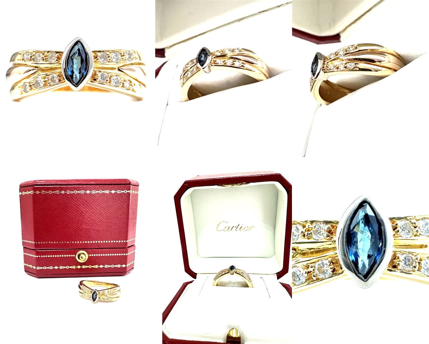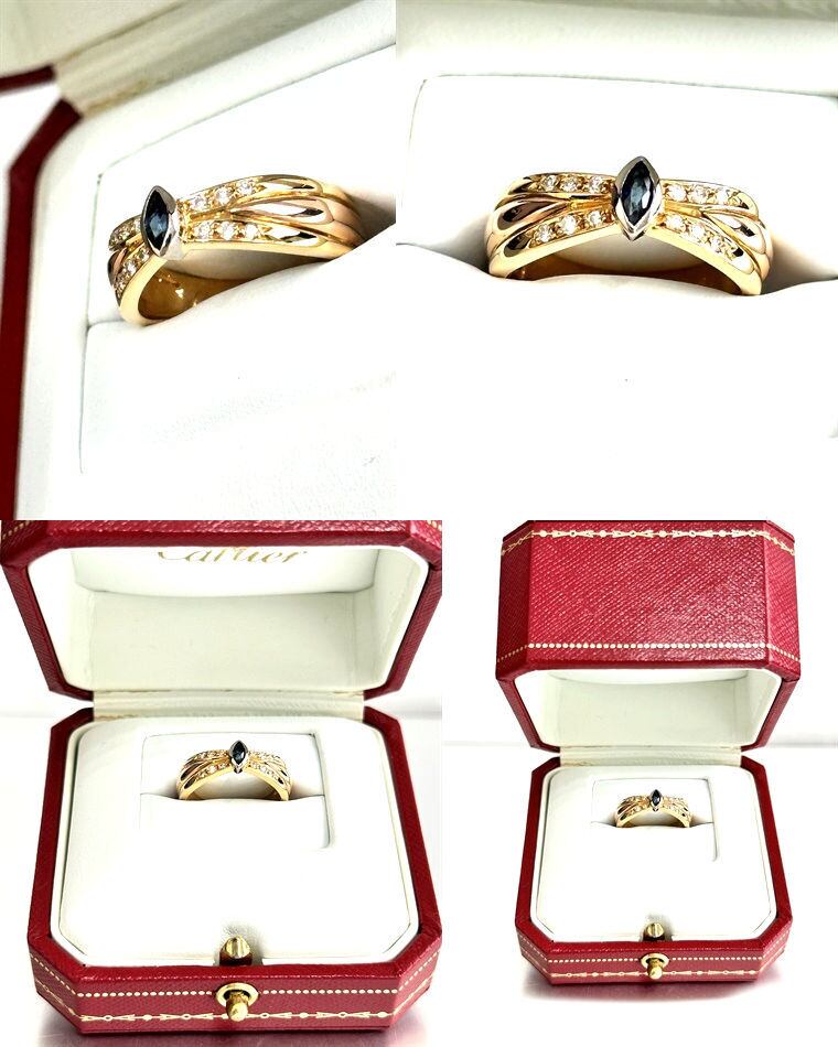 CARTIER カルティエ K18 ゴールド スリーカラー マーキス サファイア ダイヤモンド リング パヴェ 指輪 ケース