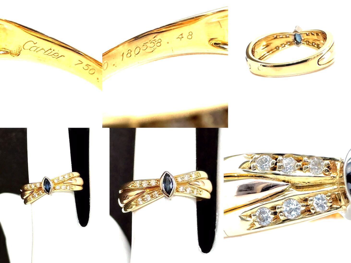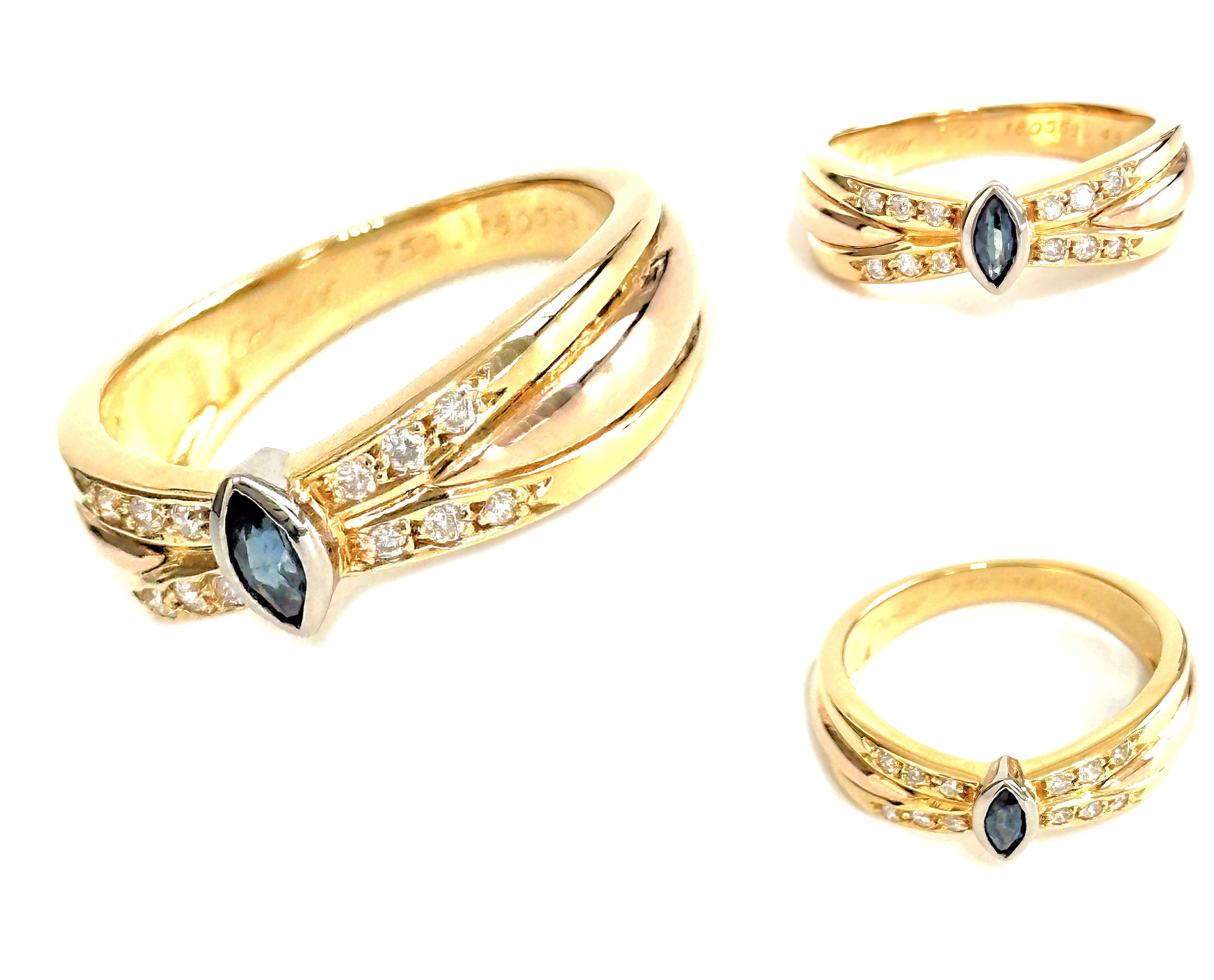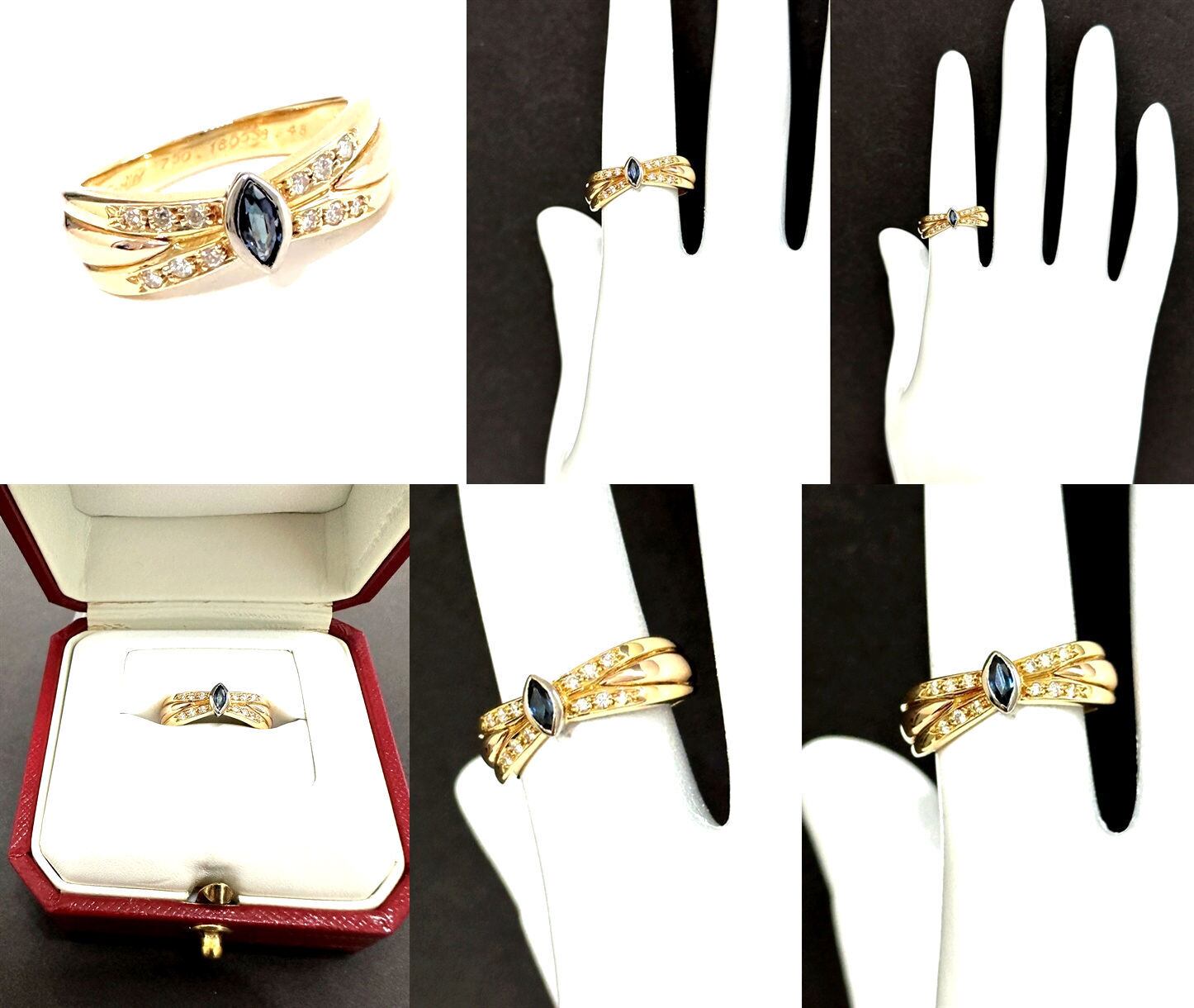 CARTIER カルティエ K18 ゴールド スリーカラー マーキス サファイア ダイヤモンド リング パヴェ 指輪 ケース