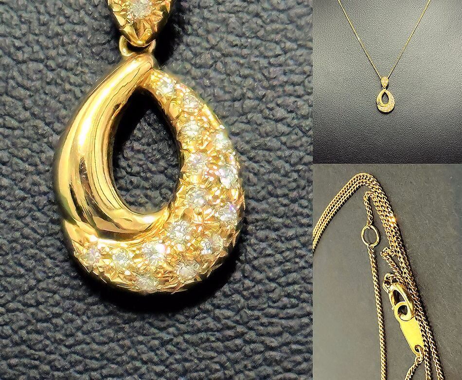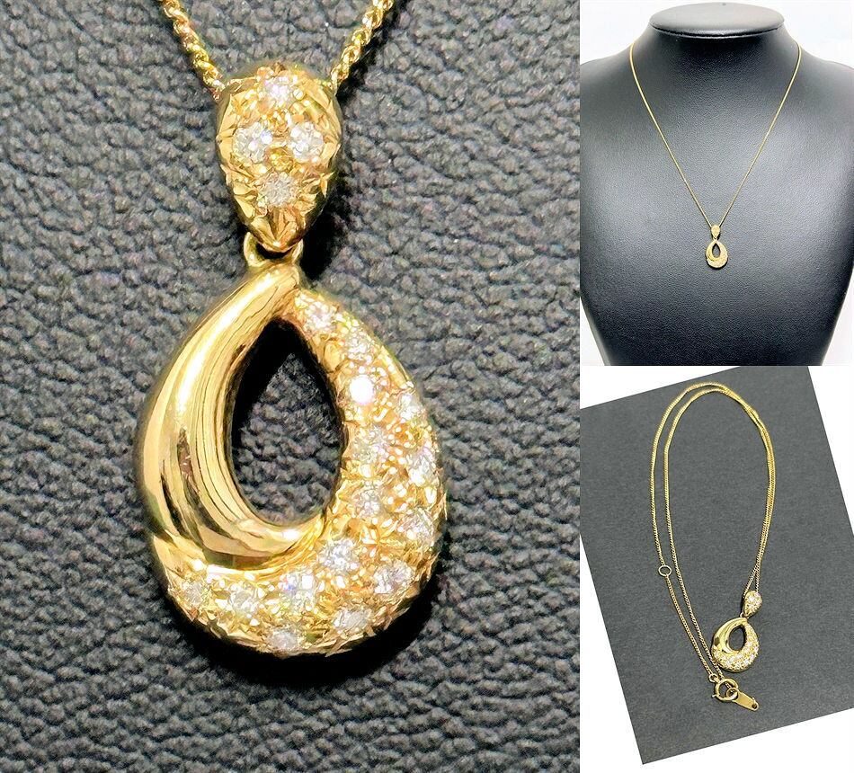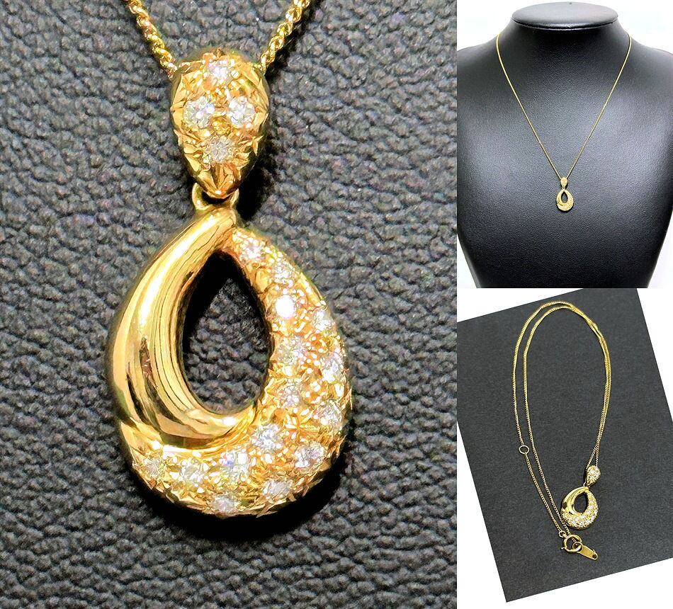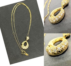 TASAKI タサキ 田崎 K18 YG オーバル パヴェ ダイヤモンド ネックレス オーロラ ゴールド 19P ダイヤ ペンダント 0.21ct