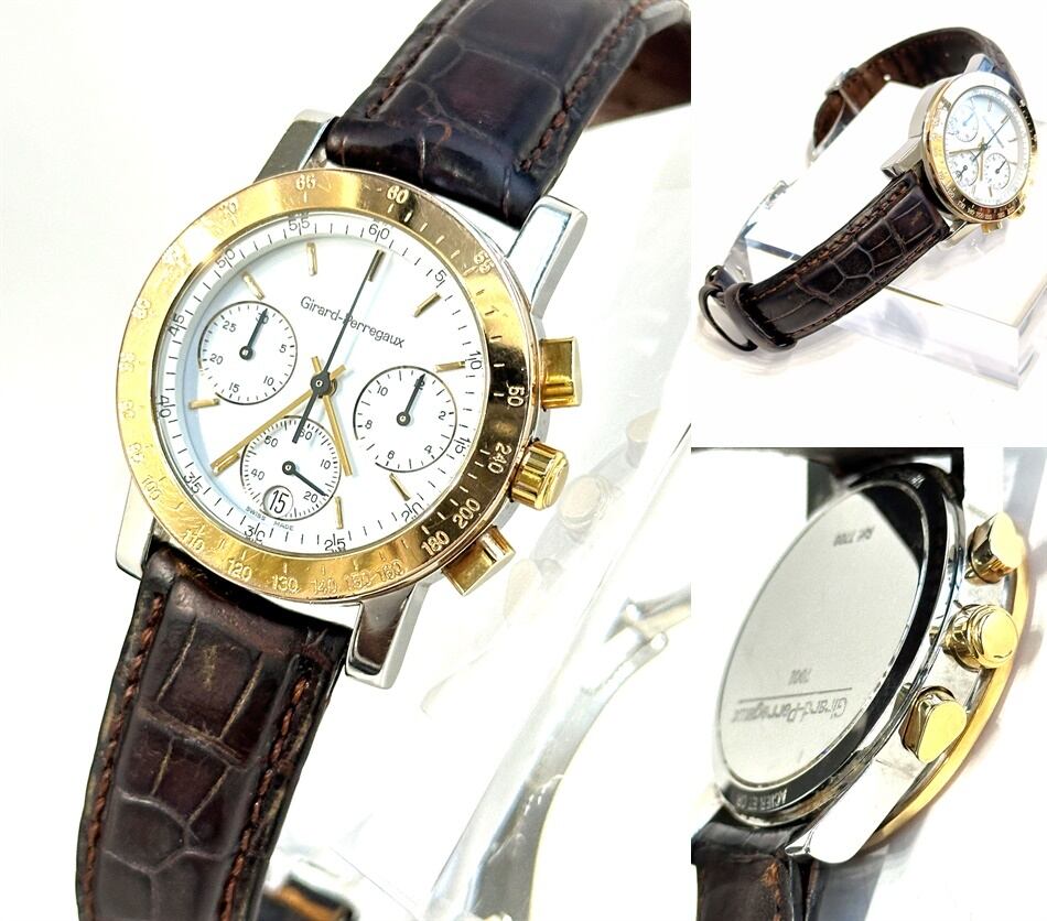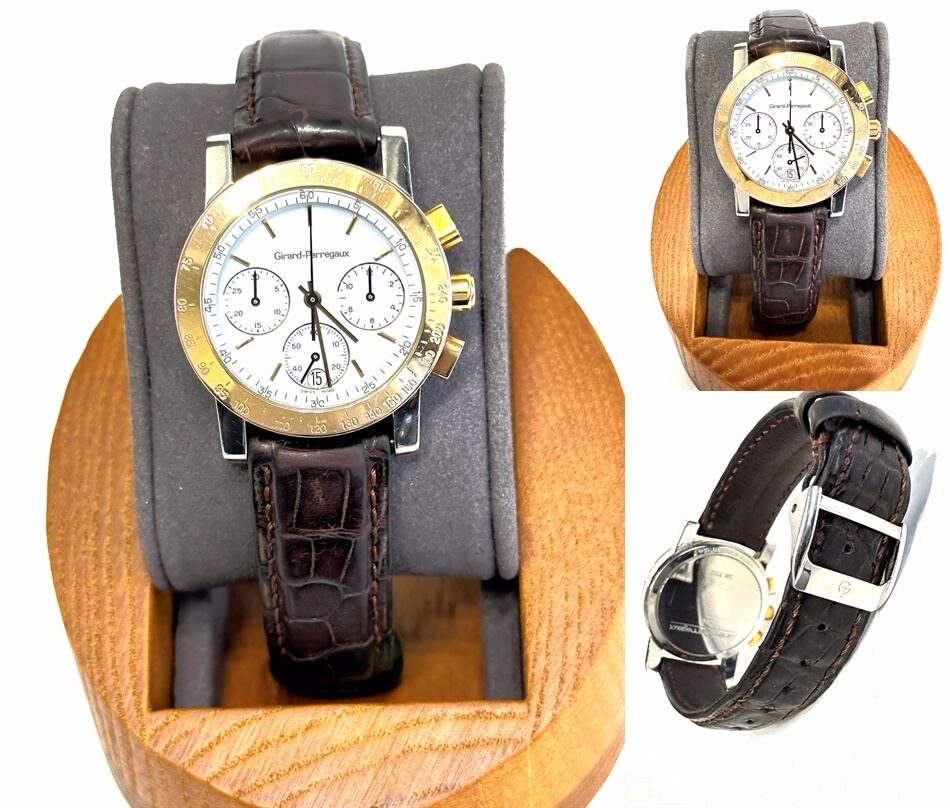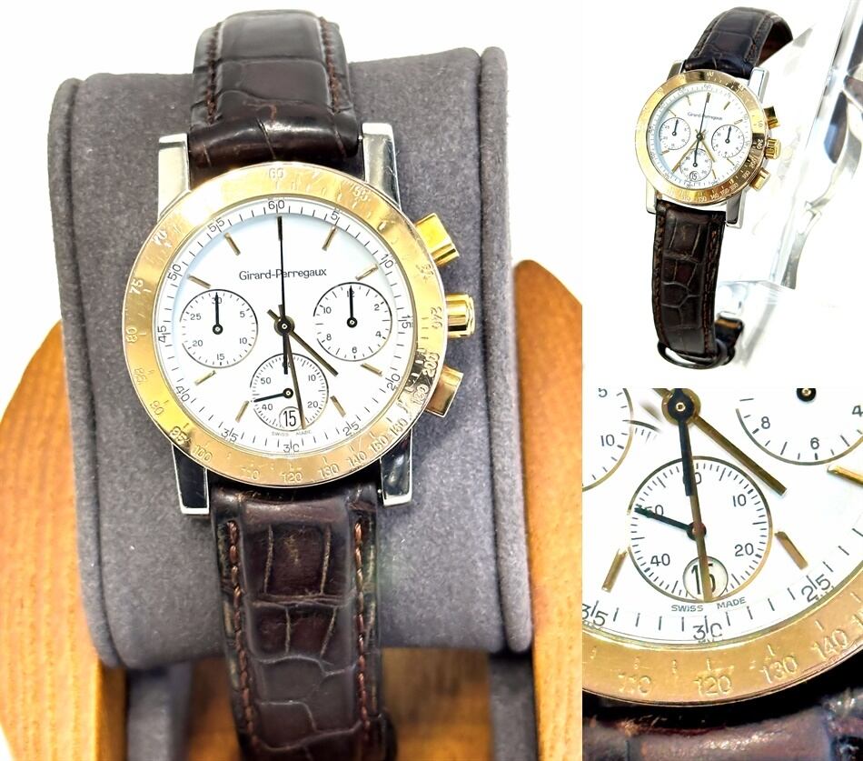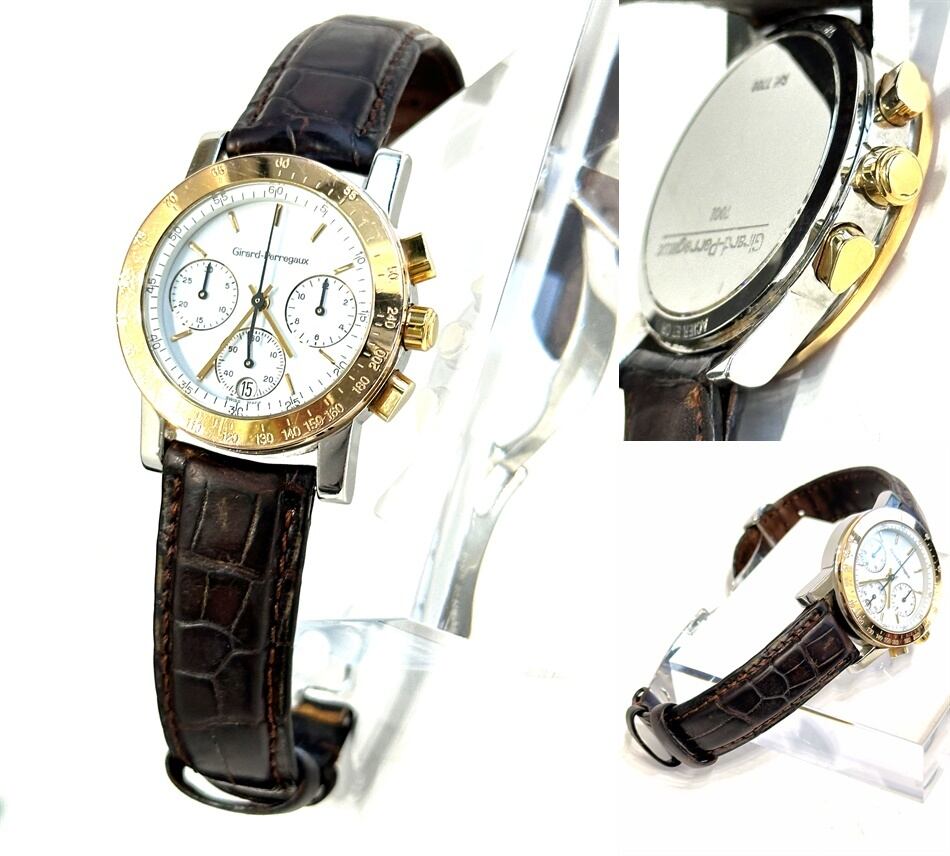 GIRARD-PERREGAUX ジラールペルゴ K18 YG イエローゴールド クロノグラフ デイト 34mm メンズ クロコレザー 時計 純正 7700