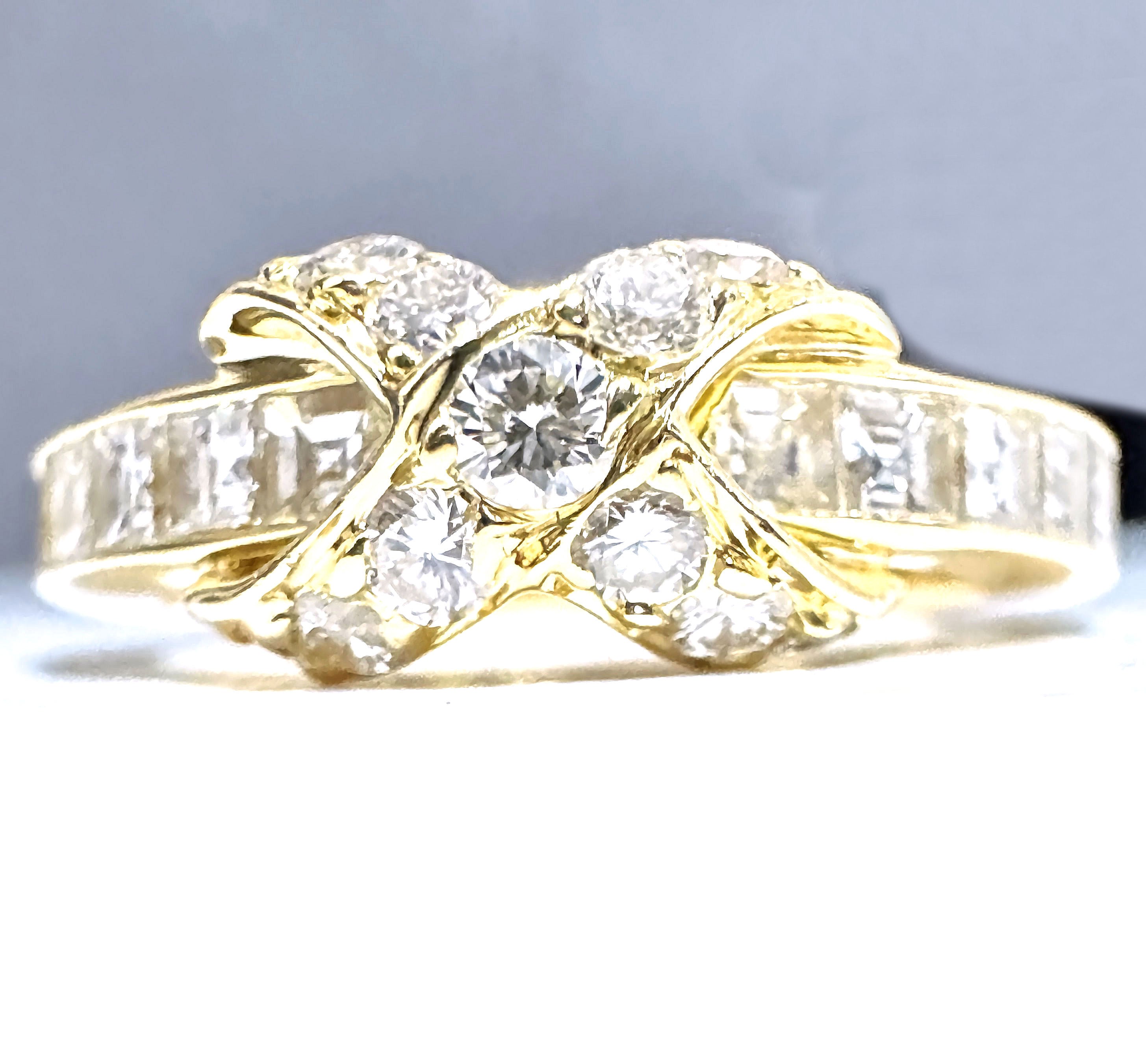 TIFFANY ティファニー K18 YG シグネチャー ダイヤモンド Xバンド リング パヴェ ダイヤ 指輪 9号 イエローゴールド