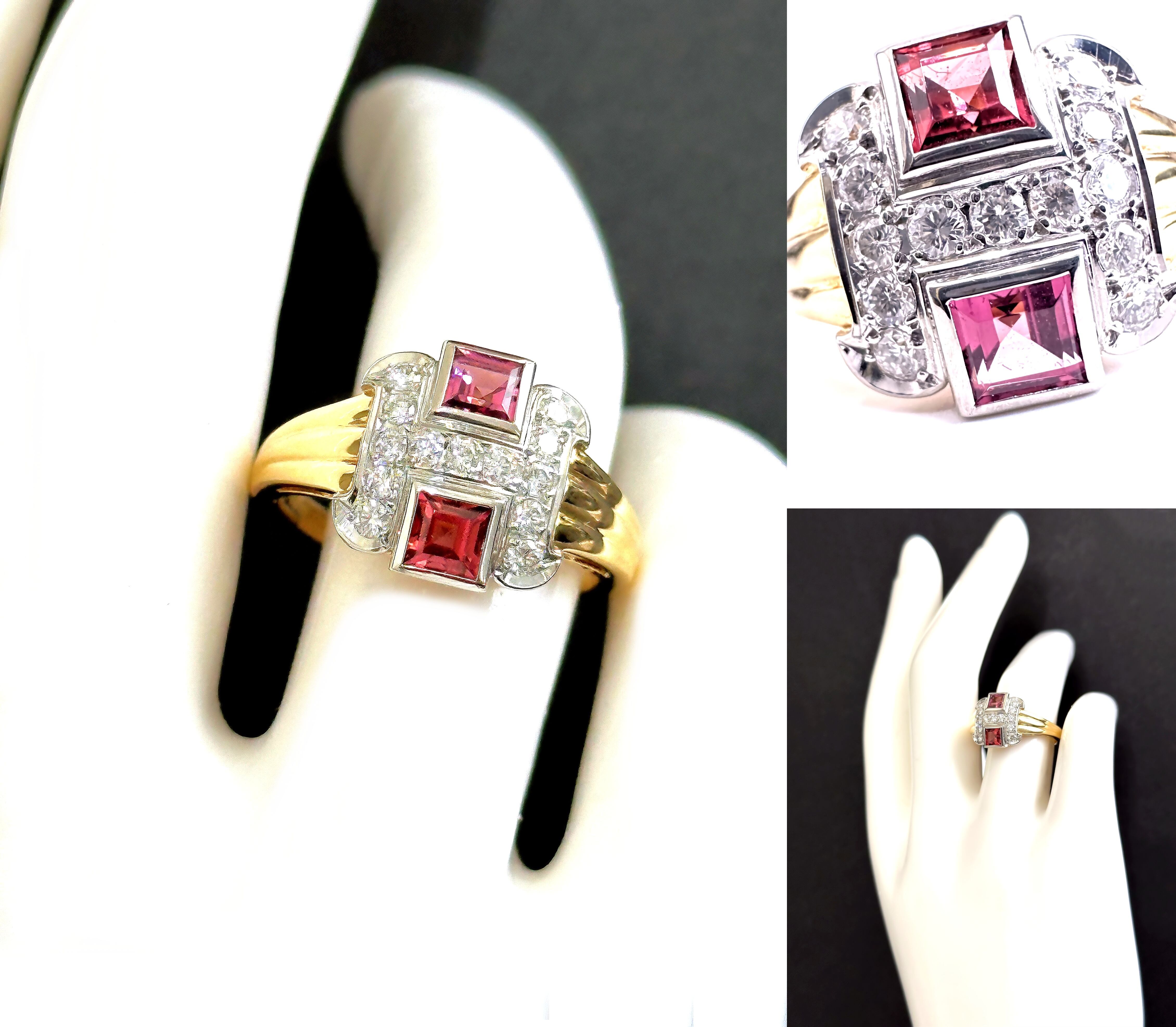 フレーム部分にイエローゴールド、宝石の土台にプラチナ素材を使用しております。
