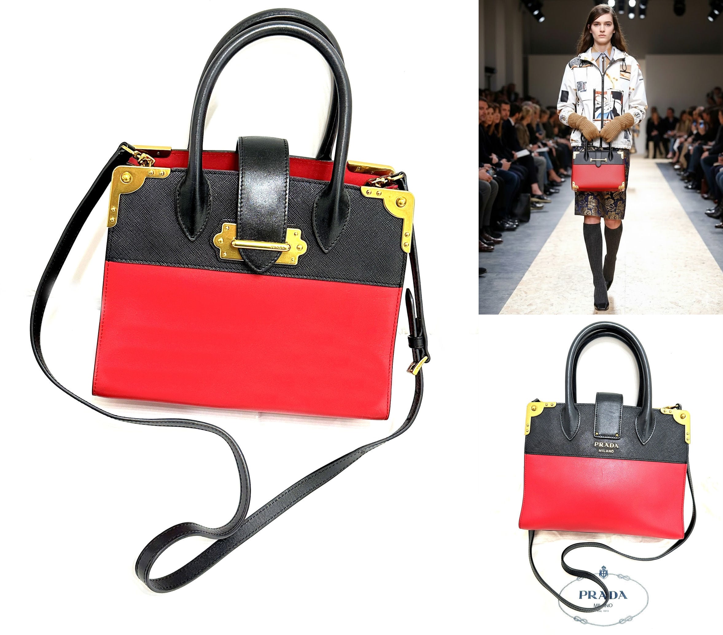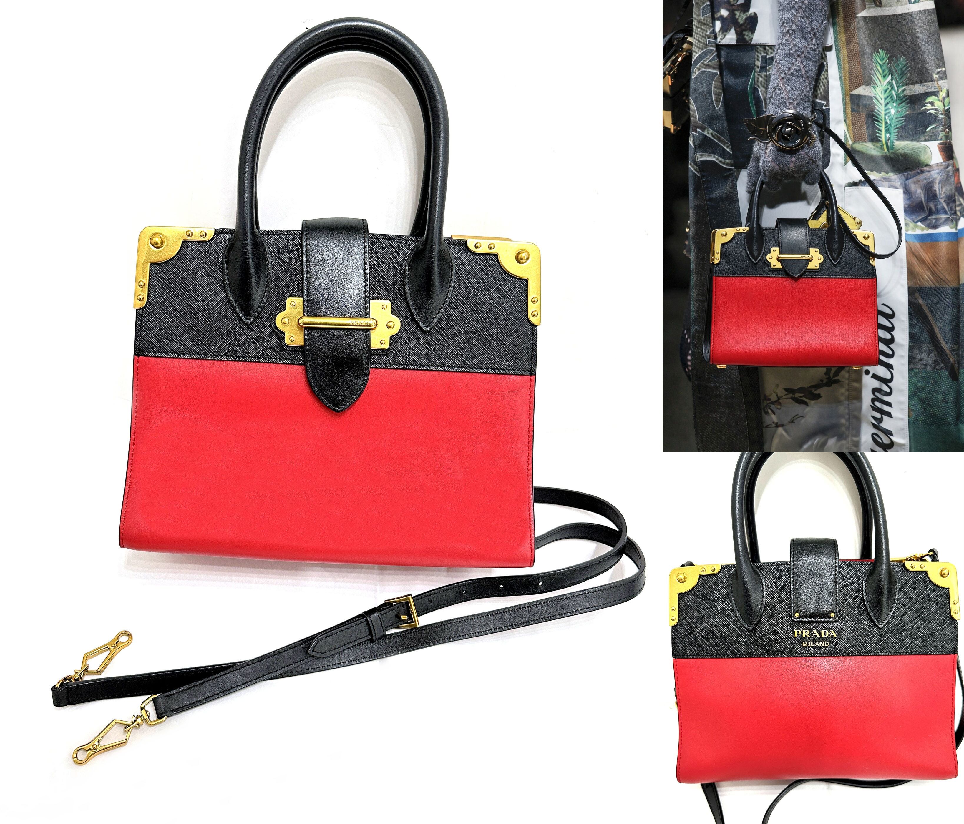 PRADA プラダ サフィアーノ カイエ 2way レザー ハンドバッグ ショルダーバッグ レッド ブラック