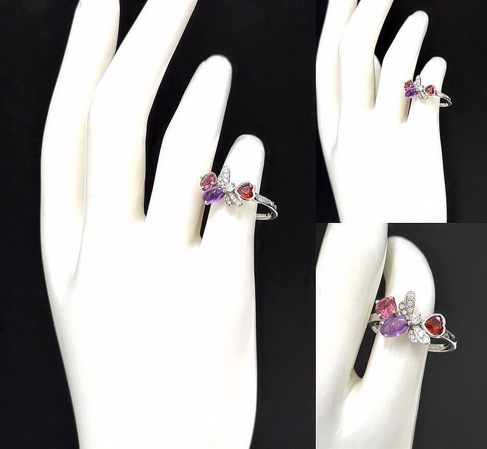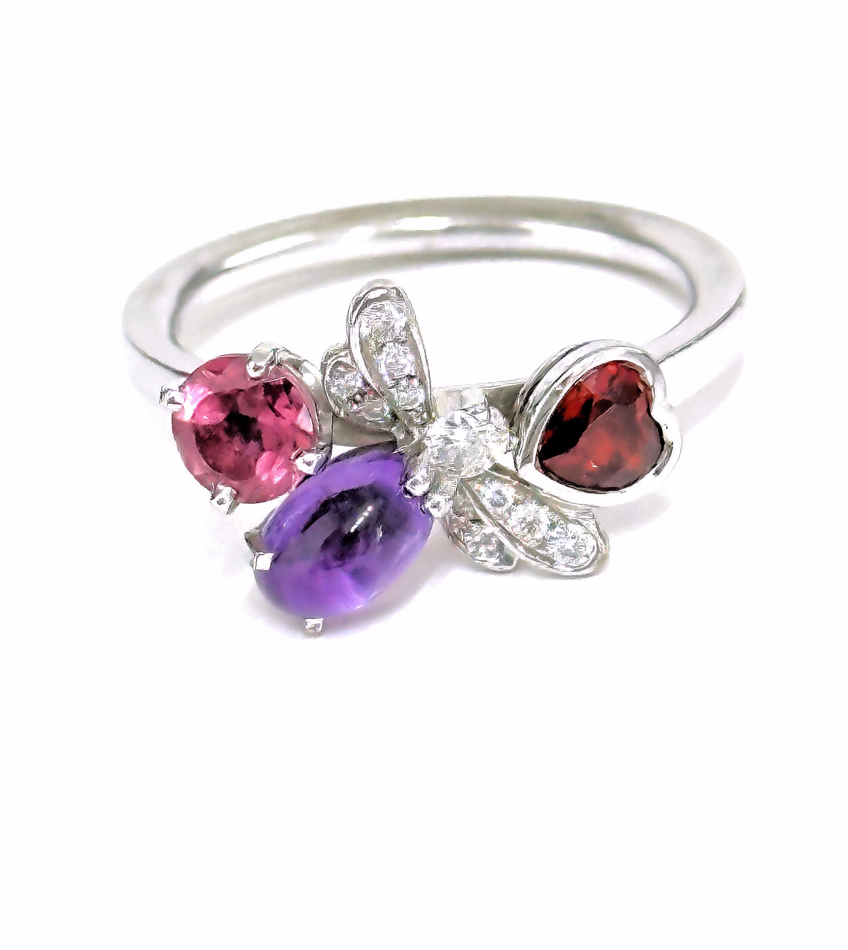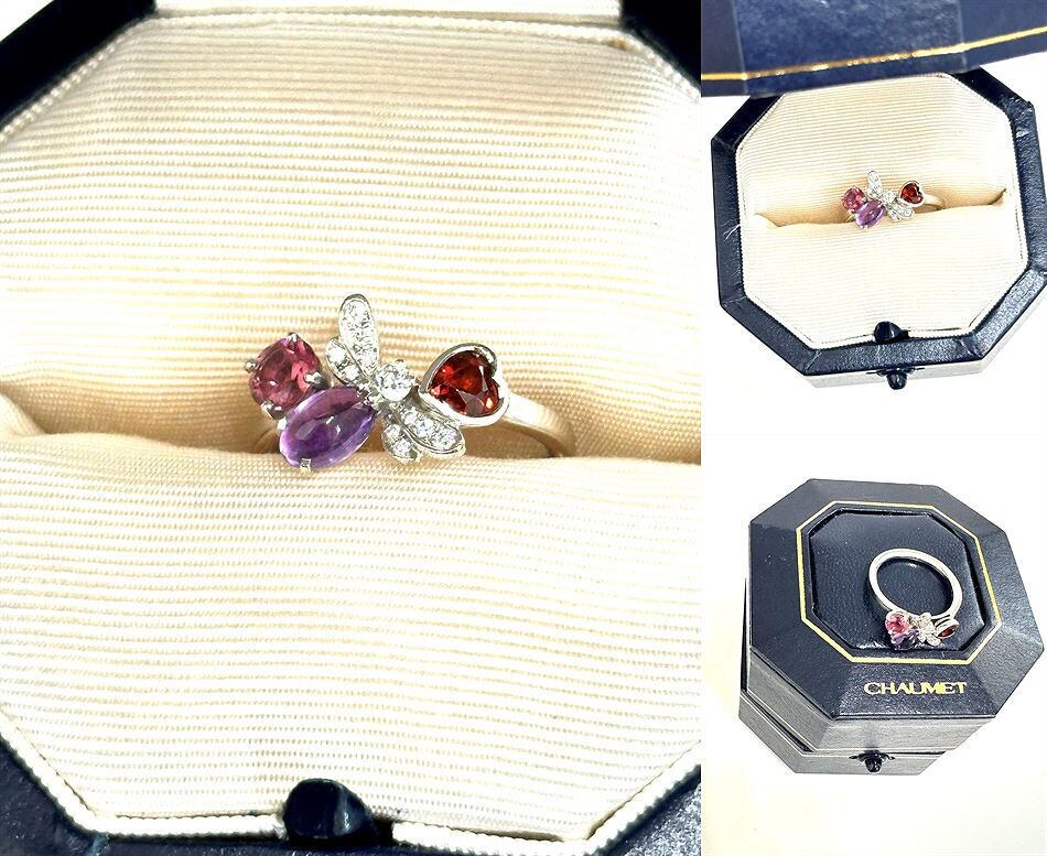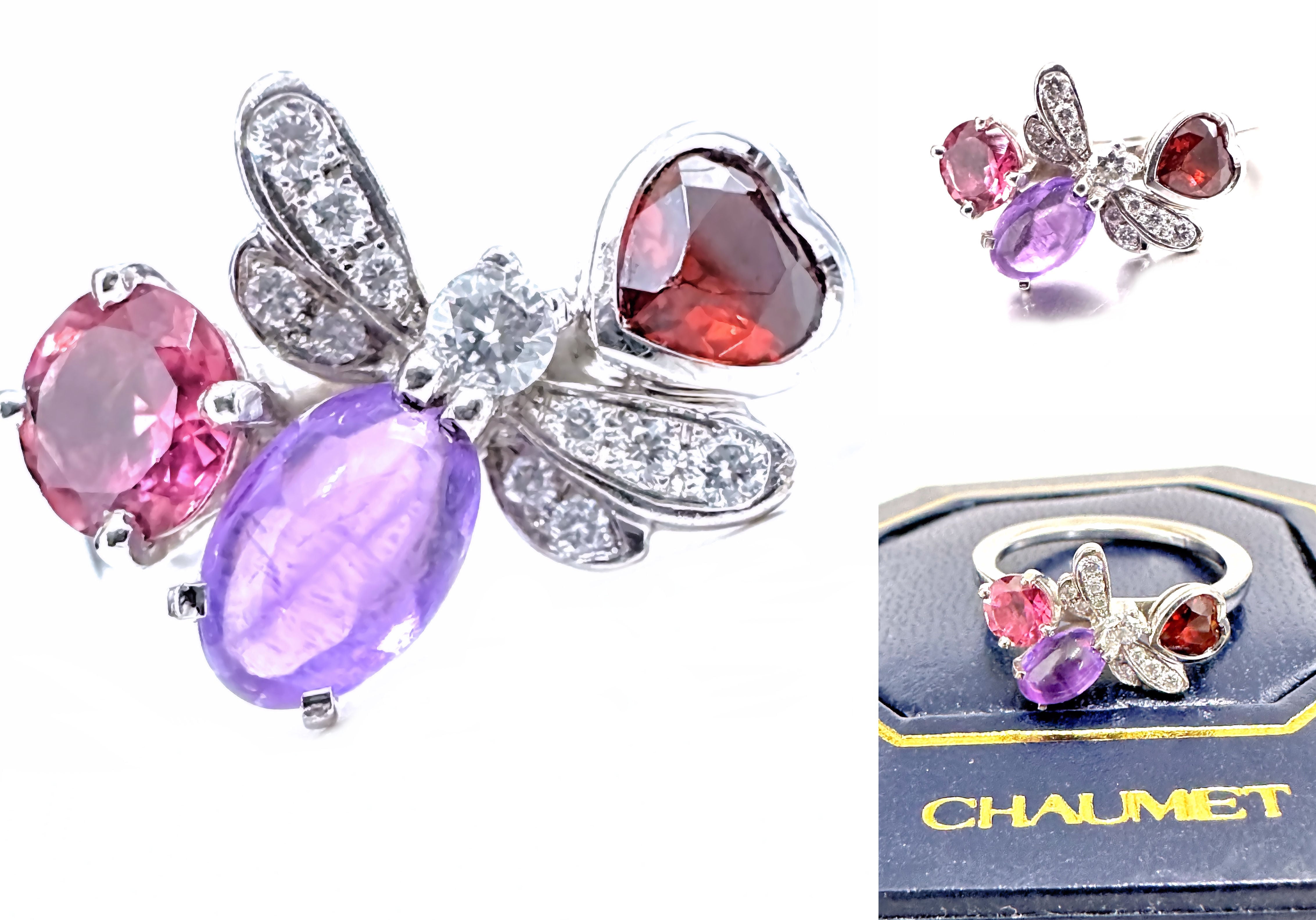 CHAUMET ショーメ K18 WG Attrape Moi アトラップ モワ リング ダイヤモンド ピンクトルマリン アメジスト ガーネット 指輪 10号