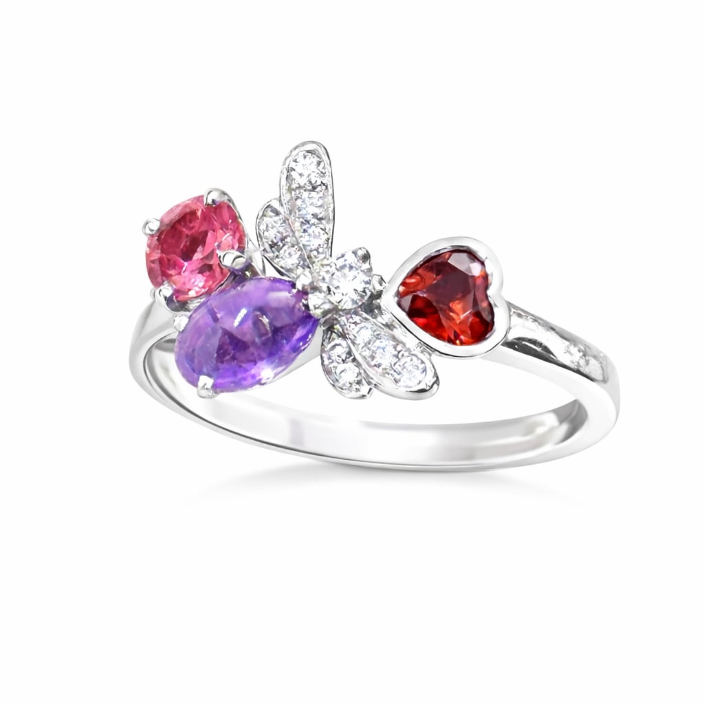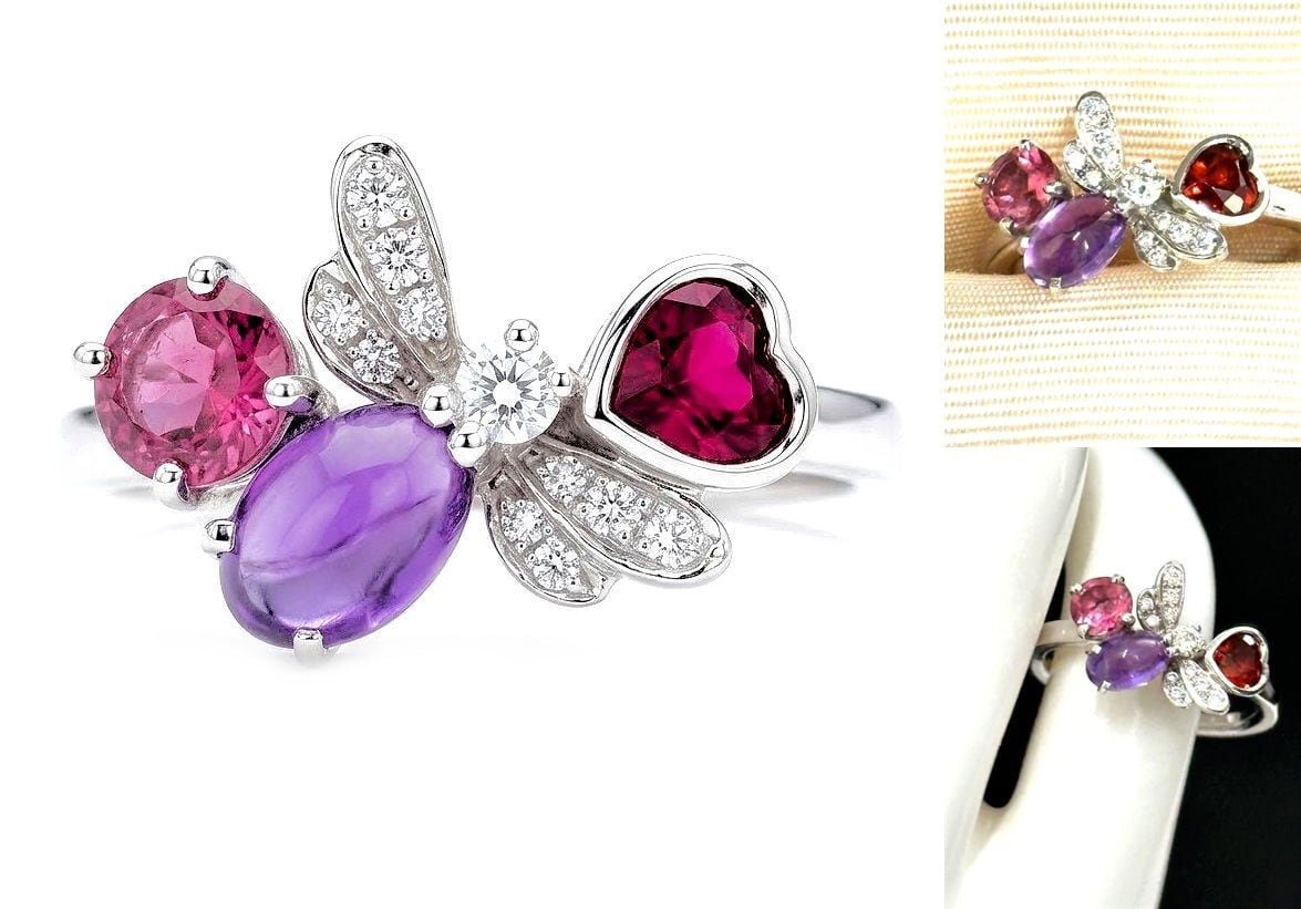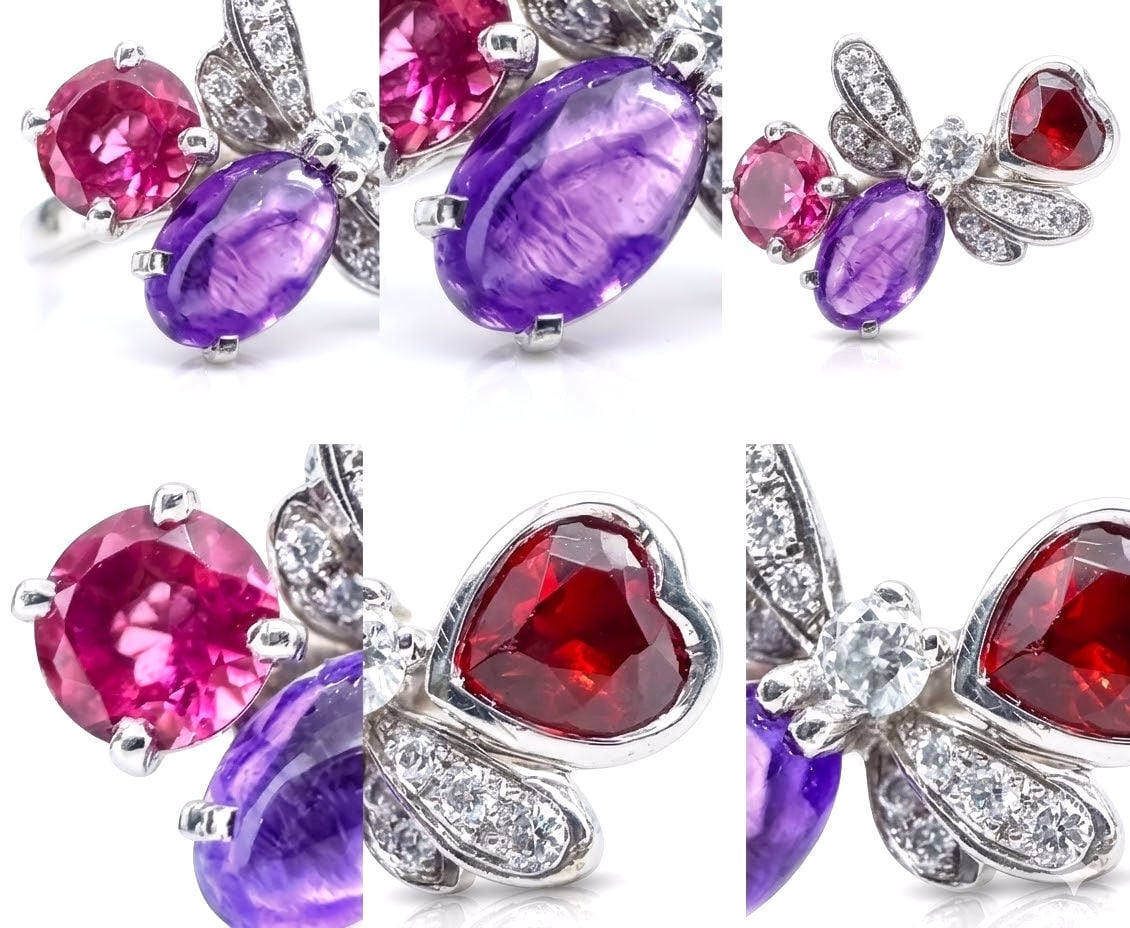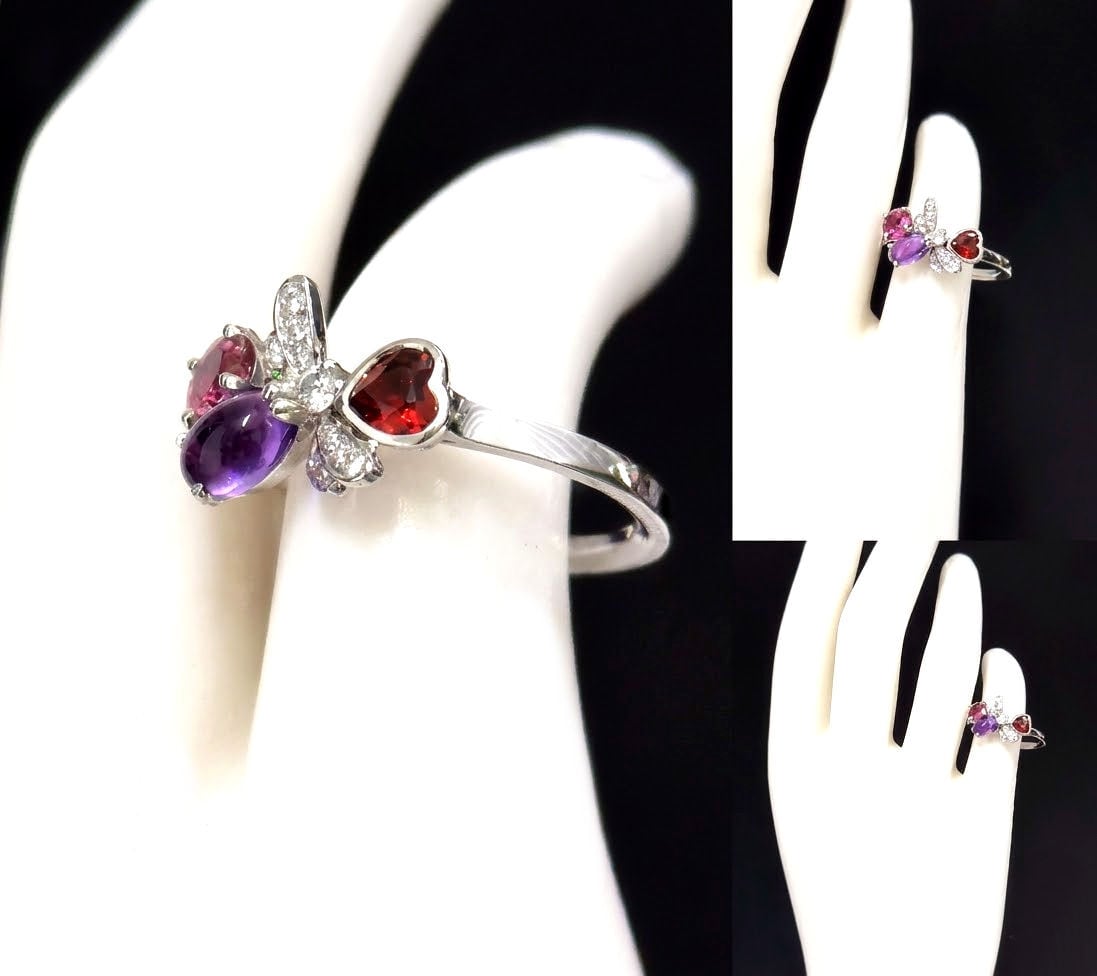 CHAUMET ショーメ K18 WG Attrape Moi アトラップ モワ リング ダイヤモンド ピンクトルマリン アメジスト ガーネット 指輪 10号