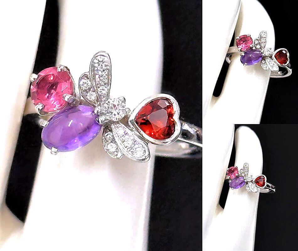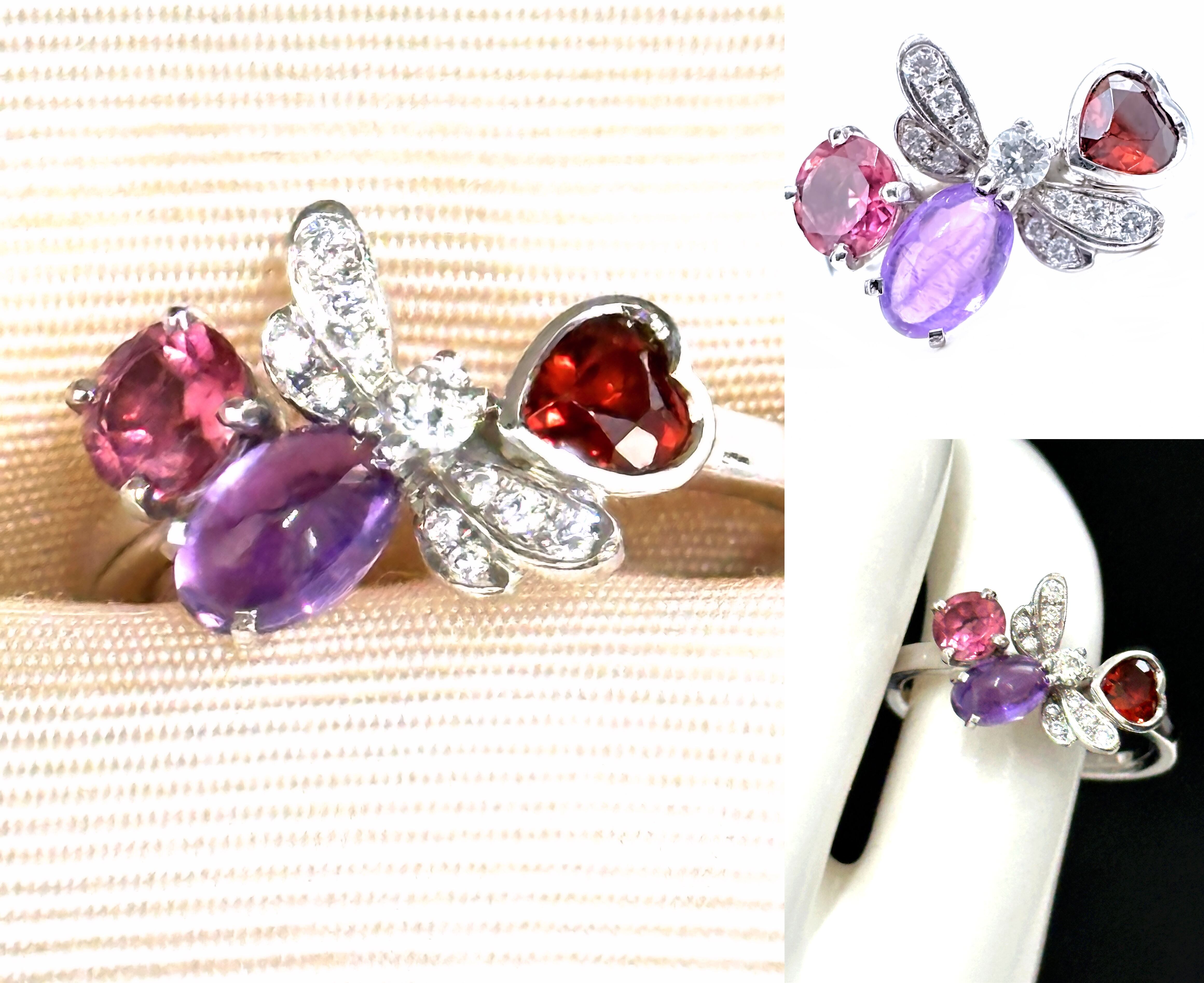 ダイヤモンド ピンクトルマリン アメジスト ガーネット